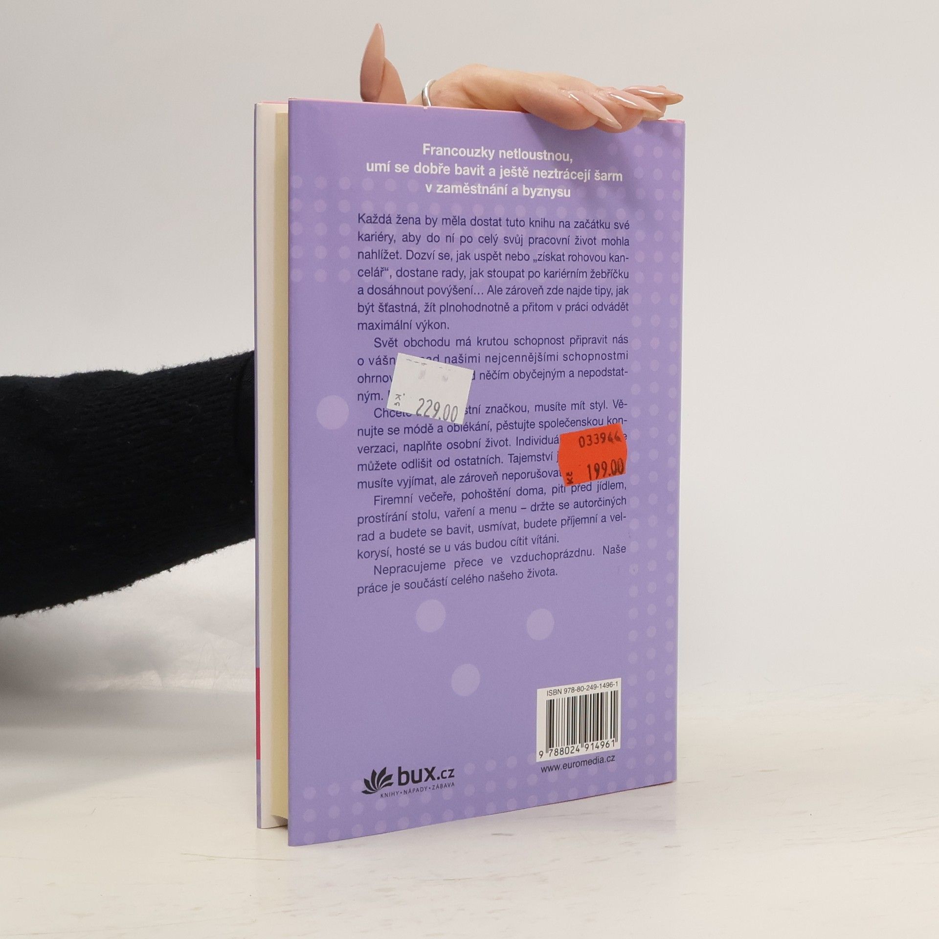 Každá žena by měla dostat tuto knihu na začátku své pracovní kariéry. Dozví se, jak uspět, jak stoupat po kariérním žebříčku, ale zároveň zde najde tipy, jak se oblékat, pohostit, jak se chovat ve firmě, vést společenskou konverzaci, v práci odvádět maximální výkon a přitom být šťastná. Zkrátka jak skloubit zaměstnání a soukromí. Autorka je vtipná a moudrá, detail dovedně střídá s celkovými obrazy, aniž přitom ztrácí ze zřetele to nejdůležitější: cítit se dobře, čelit problémům, jít dál a vždycky si to co nejvíce užít.