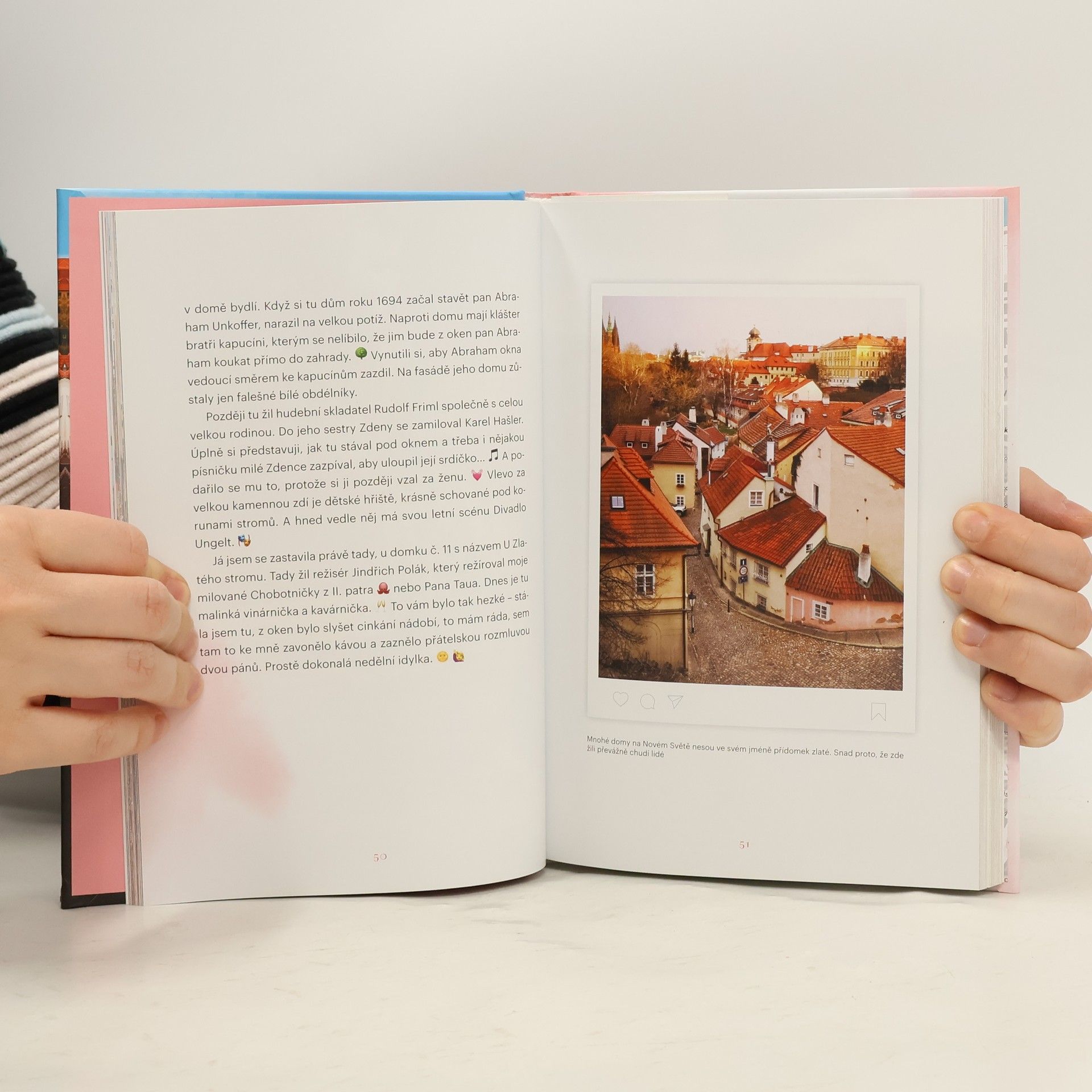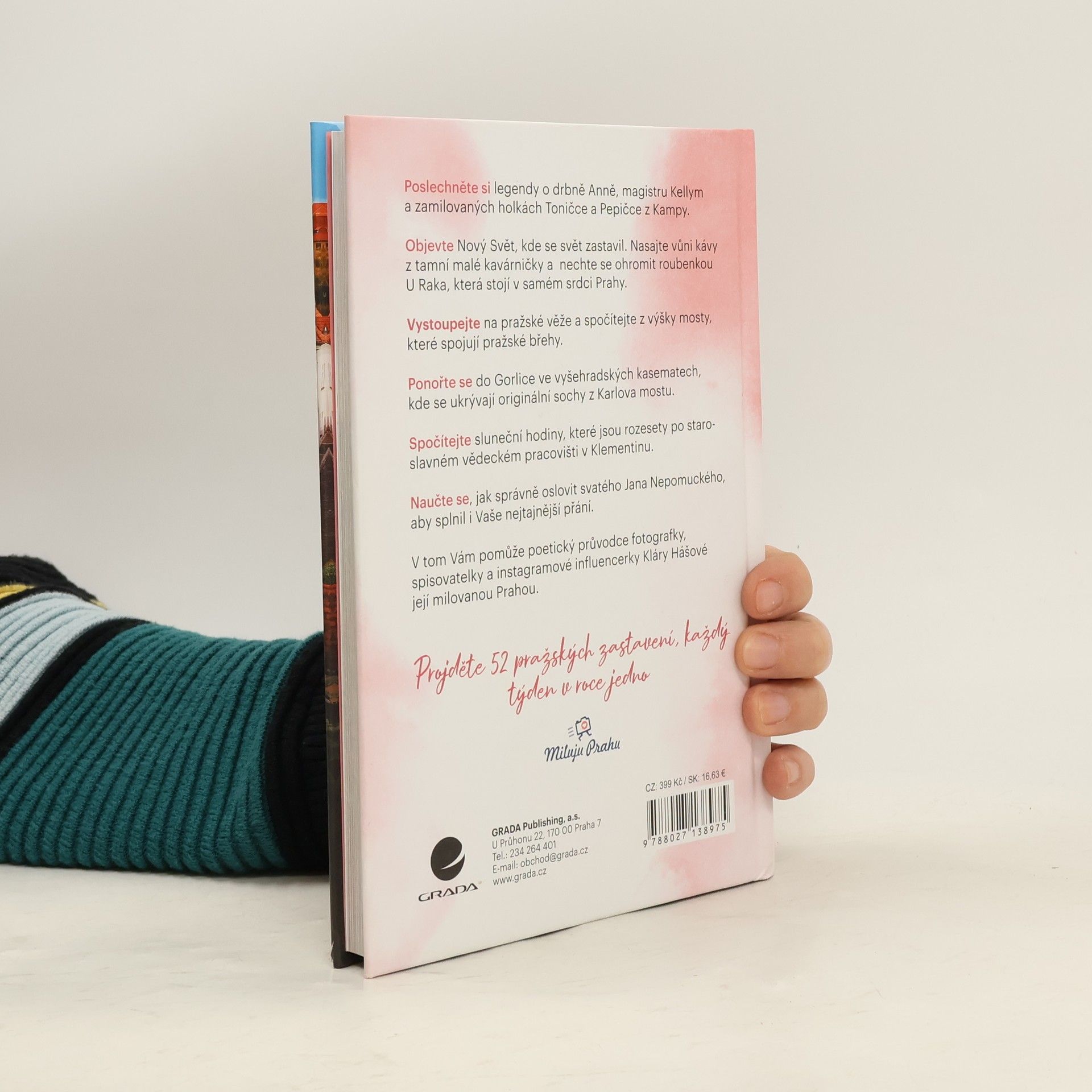 Nový poetický průvodce fotografky, spisovatelky a instagramové influencerky Kláry Hášovéjejí milovanou Prahou Vám nabídne pohled na místa, která možná znáte, ovšem v nové perspektivě: prostřednictvím nádherných Klářiných záběrů a citlivých zamyšlení.S Klárou si můžete například poslechnout legendy o drbně Anně, magistru Kellym a zamilovaných holkách Toničce a Pepičce z Kampy. Objevíte s ní Nový Svět, kde se čas zastavil. Nasajete vůni kávy z tamní malé kavárničky a nechte se ohromit roubenkou U Raka, která stojí v samém srdci Prahy. Můžete též vystoupat na pražské věže a spočítat z výšky všechny mosty, které spojují pražské břehy. Ponořit se do Gorlice ve vyšehradských kasematech, kde se ukrývají originální sochy z Karlova mostu. Spočítat sluneční hodiny, které jsou rozesety po staroslavném vědeckém pracovišti v Klementinu a mnohé další. Užijte si své pražské dobrodružství!