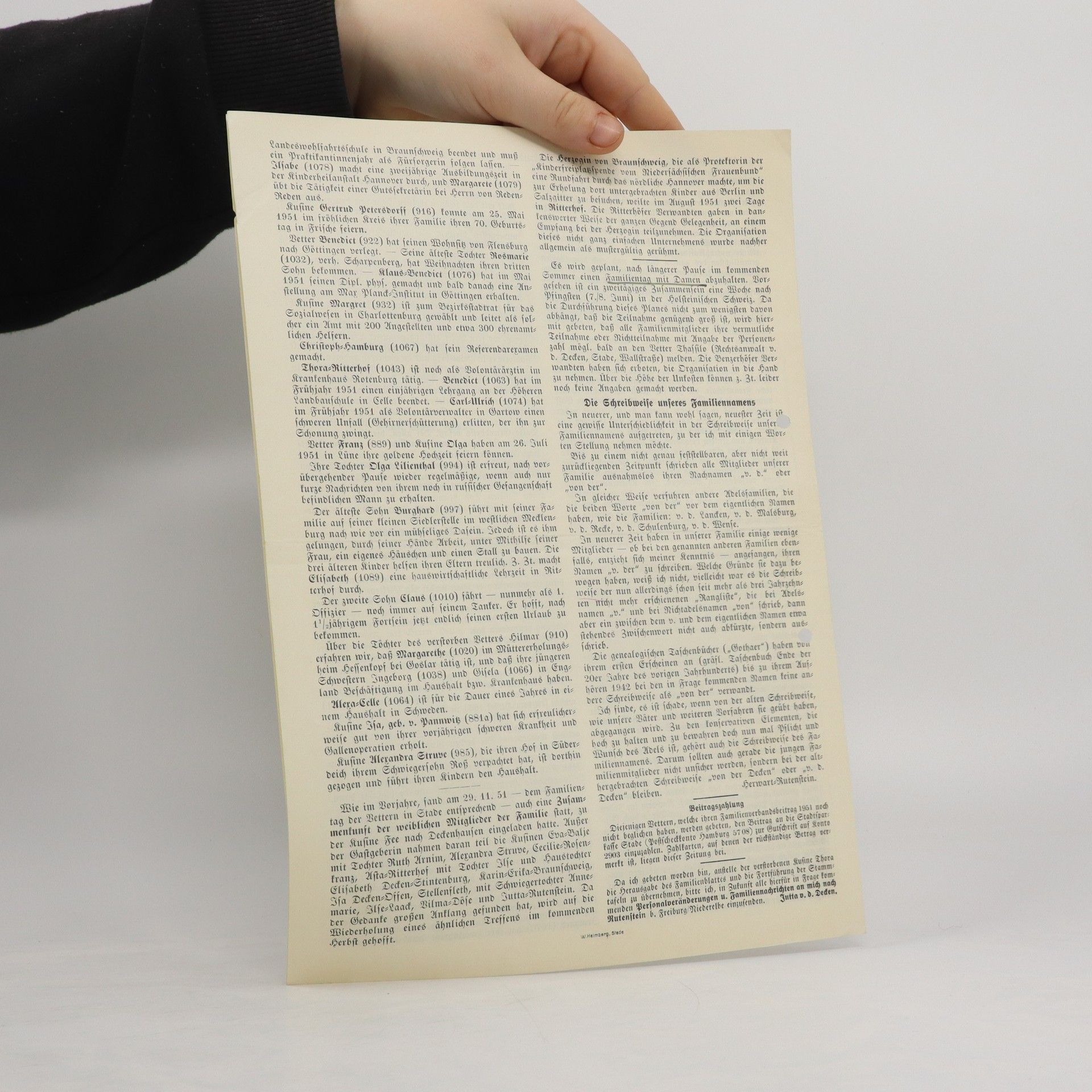 Pro Aris et Focis. Blätter der Familie von der Decken 33. 1951/52, Autorenkollektiv