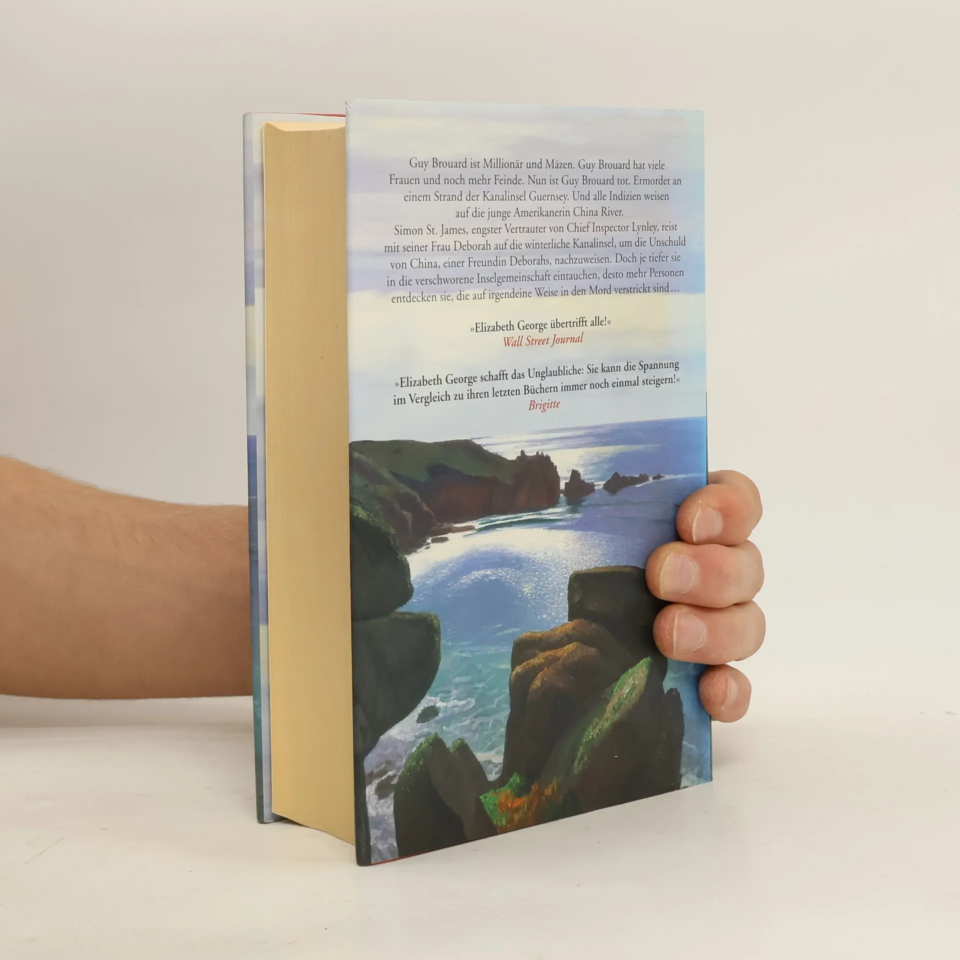Guy Brouard ist Millionär und Mäzen. Guy Brouard hat viele Frauen und noch mehr Feinde. Nun ist Guy Brouard tot. Ermordet an einem Strand der englischen Kanalinsel Guernsey. Verdächtige und Motive gibt es mehr als genug. Nur die junge Amerikanerin China Rivers hat keines. Doch alle Indizien weisen auf sie. China hatte ihren Bruder aus Kalifornien nach Guernsey begleitet, um Guy Brouard Architekturpläne für ein von ihm gestiftetes Museum zum Gedenken an die deutsche Okkupation im Zweiten Weltkrieg zu übergeben. Eine andere Verbindung existiert augenscheinlich nicht. Simon St. James, engster Vertrauter von Inspector Thomas Lynley, reist mit seiner Frau Deborah auf die winterliche Kanalinsel, um die Unschuld von China, einer alten Freundin Deborahs, nachzuweisen. Doch je tiefer sie in die verschworene Inselgemeinschaft eintauchen, desto mehr Personen entdecken sie, die auf irgendeine Weise in den Mord an Guy Brouard verstrickt sind: seine Exfrau, sein Sohn, seine Geliebte, seine Schwester, seine jugendlichen Schützlinge, der tragisch ausgebootete einheimische Architekt. Liegen die Motive in Brouards undurchsichtiger Vergangenheit? Oder reichen sie zurück bis in Guernseys wechselvolle Geschichte? Weltwoche „Elizabeth George tritt in die Fußstapfen Agatha Christies. Gekonnt!“ Cosmopolitan George lässt „den Traum ihrer Leser wahr werden, daß ein spannendes, ein bewegendes Buch niemals zu Ende sein dürfe.“ Die Welt