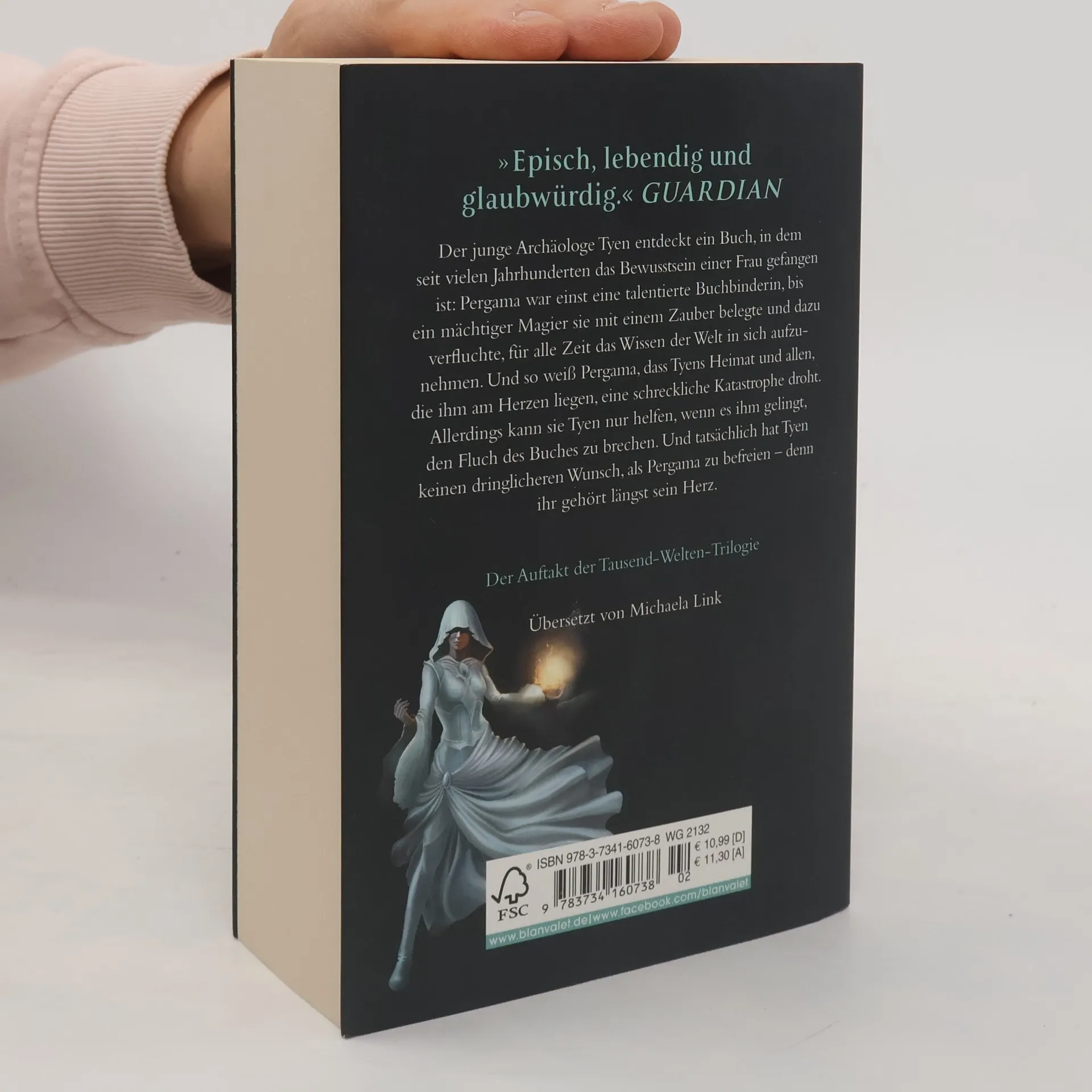 Der junge Archäologe Tyen entdeckt ein magisches Buch, in dem seit vielen Jahrhunderten das Bewusstsein einer Frau gefangen ist: Pergama war einst eine talentierte Buchbinderin, bis ein mächtiger Magier sie mit einem Zauber belegte und dazu verfluchte, für alle Zeit das Wissen der Welt in sich aufzunehmen. Und so weiß Pergama, dass Tyens Heimat und allen, die ihm am Herzen liegen, eine schreckliche Katastrophe droht. Allerdings kann sie Tyen nur helfen, wenn es ihm gelingt, den Fluch des Buches zu brechen. Und tatsächlich hat Tyen keinen dringlicheren Wunsch, als Pergama zu befreien – denn ihr gehört längst sein Herz.