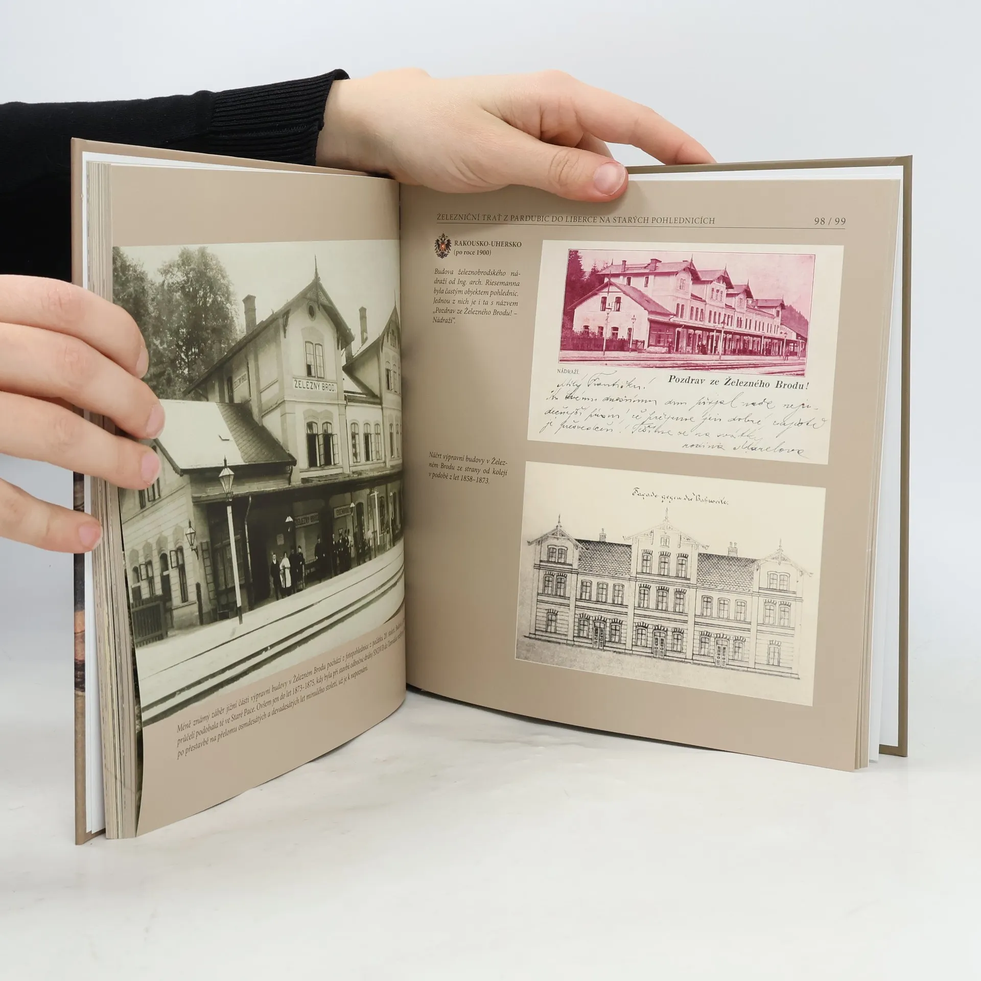 Celobarevná publikace „Železniční trať z Pardubic do Liberce na starých pohlednicích“ autorů Karla Černého a Martina Navrátila mapuje jednu z nejvýznamnějších tratí rakouské monarchie (Jihoseveroněmecká spojovací dráha – k. k. Süd-Norddeutsche Verbindungsbahn), která později propojila Liberec, Hradec Králové a Pardubice s Vídní. Kniha nabízí reprodukce unikátních historických pohlednic z období první poloviny dvacátého století i dobových fotografií, plánů a jízdních řádů vybraných z fondů archivů i významných sbírek soukromých sběratelů. Autoři chtějí prostřednictvím této publikace připomenout nejen nostalgii rakousko-uherské a prvorepublikové železnice, ale také vzpomenout na mistrovství projektantů, techniků a dělníků, kteří před více než půldruhým stoletím toto dílo vybudovali. K nejsložitějším úsekům trati patřilo sevřené údolí řeky Jizery, které ani ne na pěti kilometrech mezi Semily a Železným Brodem připravily při stavbě dráhy projektantům a stavitelům největší obtíže. Dráha se tu tak musela nad levým břehem Jizery prokousat čtyřmi tzv. Říkovskými tunely. Díky tomu, že atraktivní místo později zpřístupnila Riegrova turistická stezka vedoucí po pravém břehu řeky Jizery, s tunely pojmenovanými Říkovský č. I až IV vzniklo absolutně největší množství pohlednic z dráhy Pardubice – Liberec. Kniha je již sedmá z řady Železniční tratě na starých pohlednicích.