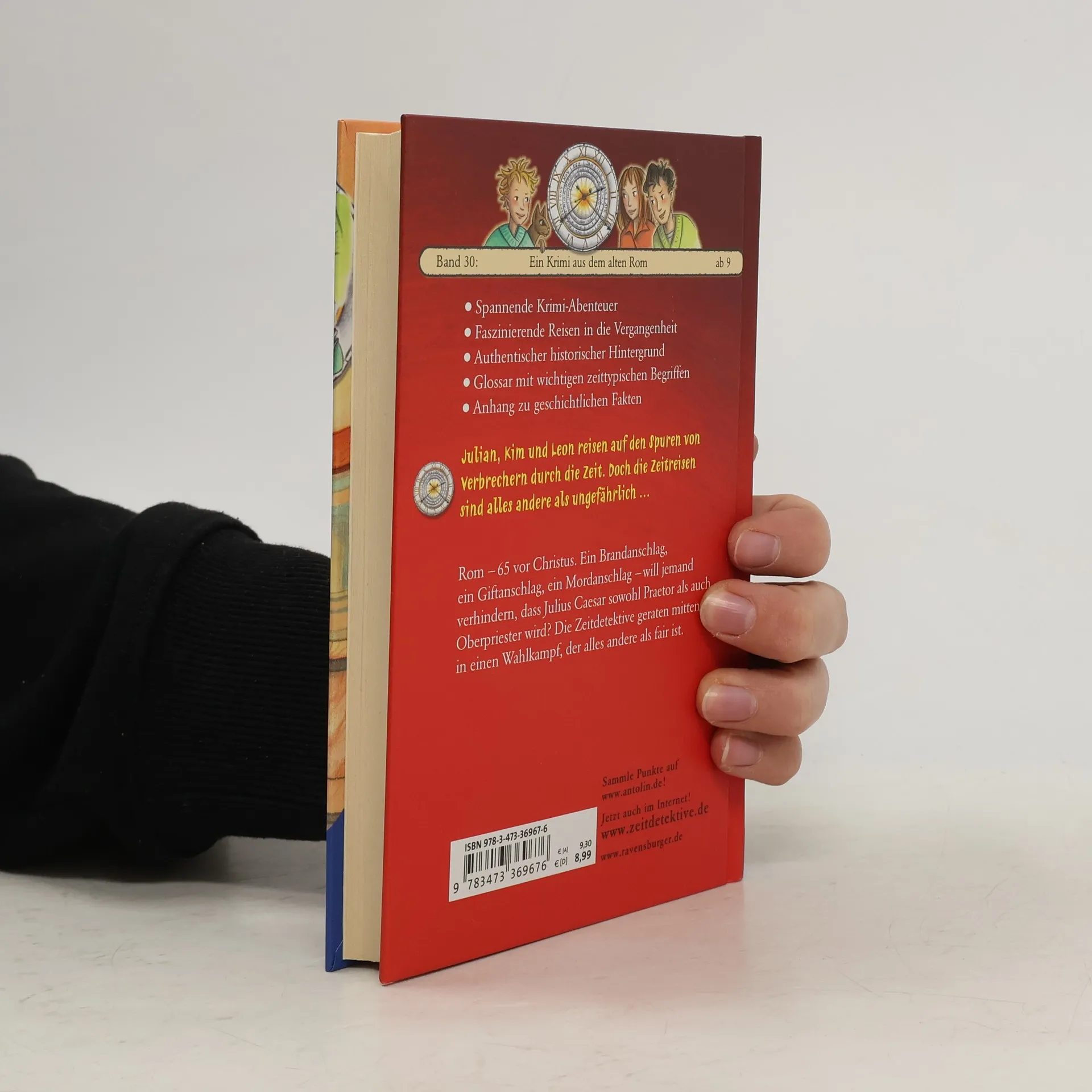 Julian, Kim und Leon reisen auf den Spuren von Verbrechern durch die Zeit. Doch die Zeitreisen sind alles andere als ungefährlich … Rom - 65 vor Christus. Ein Brandanschlag, ein Giftanschlag, ein Mordanschlag. Will jemand verhindern, dass Julius Caesar sowohl Priester als auch Oberpriester wird? Die Zeitdetektive geraten mitten in einen Wahlkampf, der alles andere als fair ist. Die Zeitdetektive erleben spannende Krimi-Abenteuer und faszinierende Reisen in die Vergangenheit in einem authentischen historischen Hintergrund.