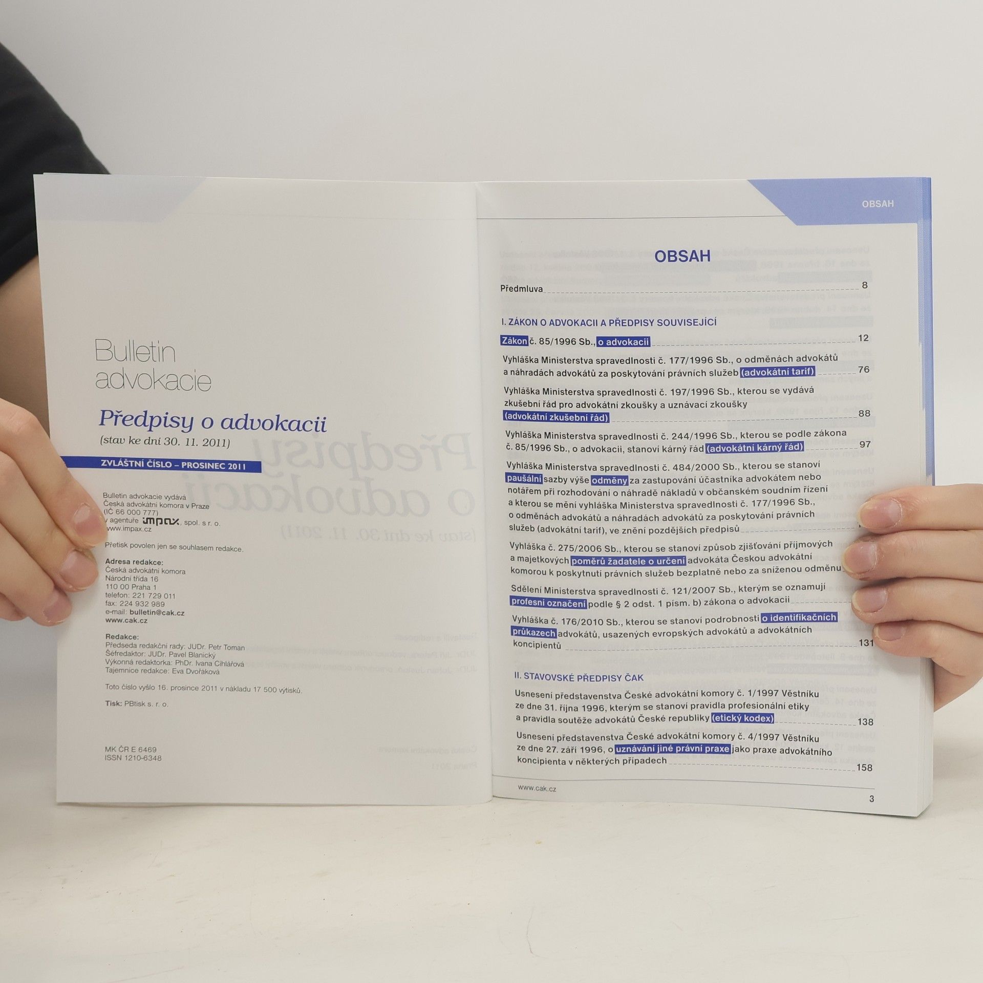 Předpisy o advokacii. Stav ke dni 30.11.2011, Jiří Patera, Johan Justoň