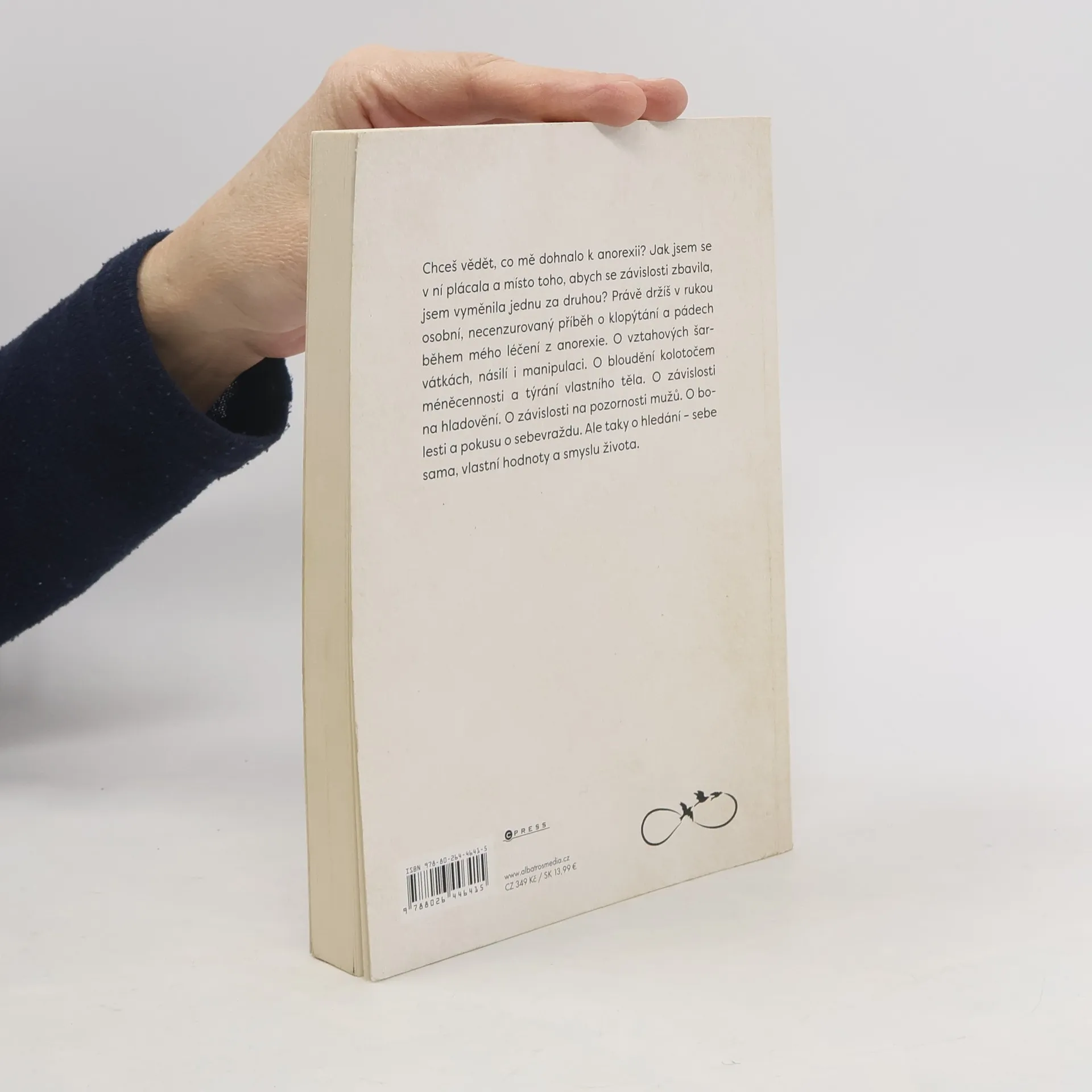 Příběh plný bolesti, nenávisti k vlastnímu tělu, ale i naděje a touhy po životě. Chceš vědět, co mě dohnalo k anorexii? Jak jsem se v ní plácala a místo toho, abych se závislosti zbavila, jsem vyměnila jednu za druhou? Právě držíš v rukou osobní, necenzurovaný příběh o klopýtání a pádech během mého léčení z anorexie. O vztahových šarvátkách, násilí i manipulaci. O bloudění kolotočem méněcennosti a týrání vlastního těla. O závislosti na hladovění. O závislosti na pozornosti mužů. O bolesti a pokusu o sebevraždu. Ale taky o hledání - sebe sama, vlastní hodnoty a smyslu života.