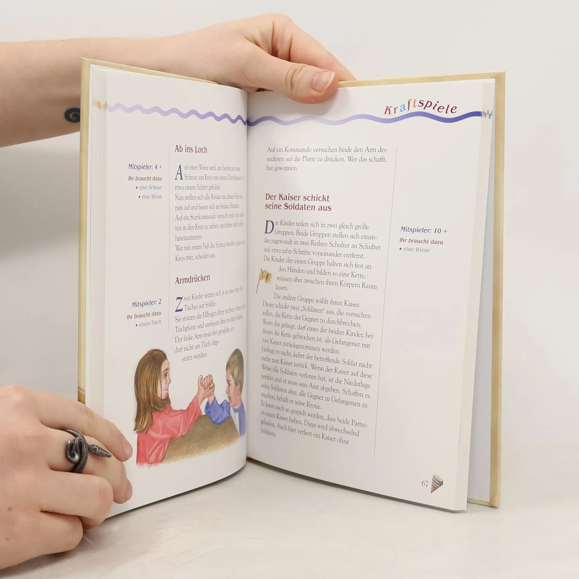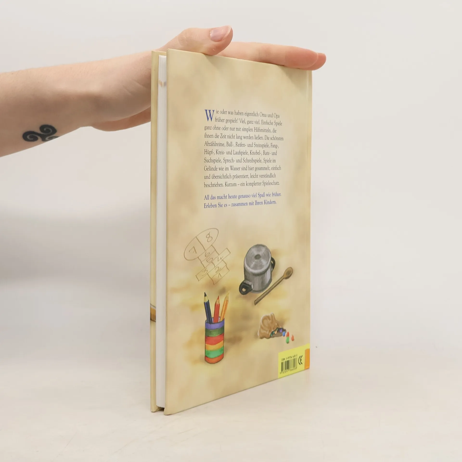 Dieser neu illustrierte Band bietet eine Vielzahl an Kinderspielen aus Omas und Opas Zeiten - von Abzählreimen über Ball-, Reifen- und Steinspiele sowie Fang-, Hüpf- und Laufspiele, Knobeln, Raten, Sprech- und Schreibspiele bis hin zu Spielen im Gelände und im Wasser. Alle Spiele haben eines gemeinsam: Sie sind schnell und mit einfachsten Mitteln machbar.