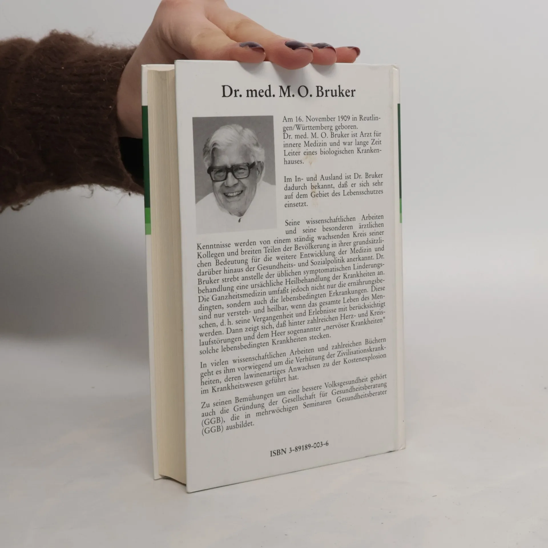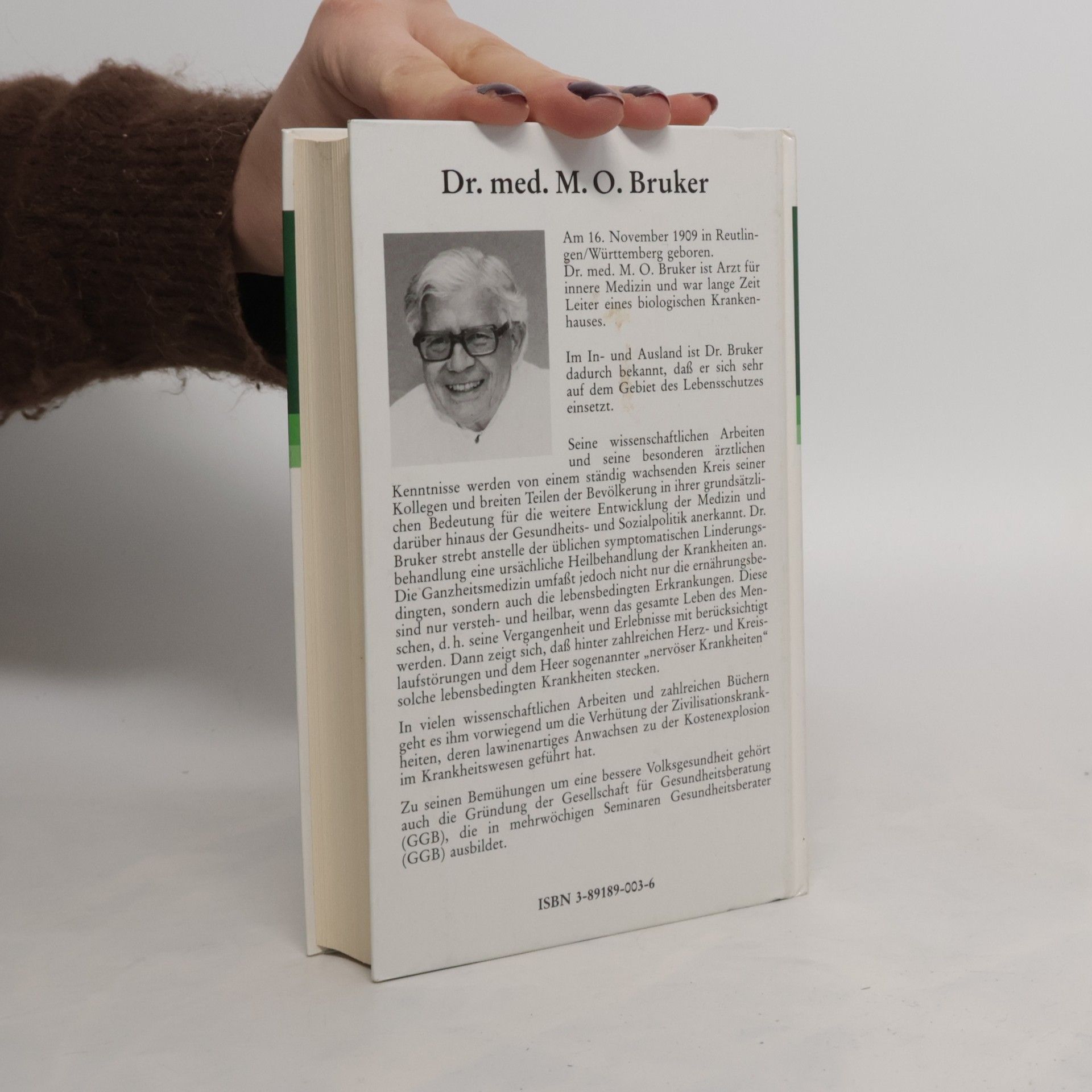 Nicht mehr lieferbar ist die 49. Auflage. Die hierauf folgende mittlerweile 51. Auflage ist erschienen als JUBILÄUMSAUSGABE unter der ISBN 978-3-89189-223-7 Dr. med M. O. Bruker (1909-2001), erfolgreicher Arzt für innere Medizin, Ernährungspionier und langjähriger Leiter biologischer Krankenhäuser, gründete die Gesellschaft für Gesundheitsberatung GGB e. V. und das Gesundheitszentrum Dr.-Max-Otto-Bruker-Haus in Lahnstein. Er gilt als der Wegbereiter einer ursächlichen Heilbehandlung von Krankheiten anstelle der üblichen symptomatischen Linderungsbehandlung. Seine Buchreihe „Aus der Sprechstunde“ verkaufte sich bis heute über 3 Millionen Mal. Die medizinische Forschung schreitet immer weiter voran, doch die Menschen werden immer kränker. Warum? Achtzig Prozent aller Krankheiten, so Dr. M. O. Bruker, sind vermeidbare, ernährungsbedingte Zivilisationskrankheiten. Das vorliegende Buch ist der Klassiker der Vollwerternährung. Hier erfahren Sie, warum wir in unserer Wohlstandsgesellschaft – trotz allem Überfluss – mangelernährt sind, und mit welcher Ernährung sich verschiedenste Krankheiten, vom Gebissverfall über Rheuma, Nieren- und Gallensteine, Hauterkrankungen und Infektanfälligkeit bis hin zum Herzinfarkt vermeiden lassen.