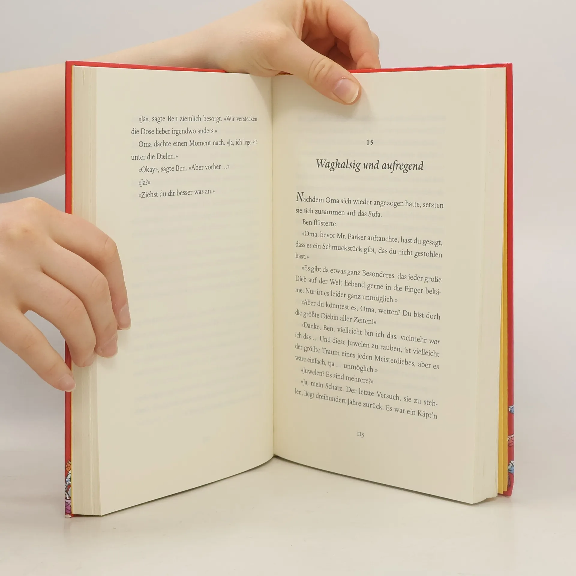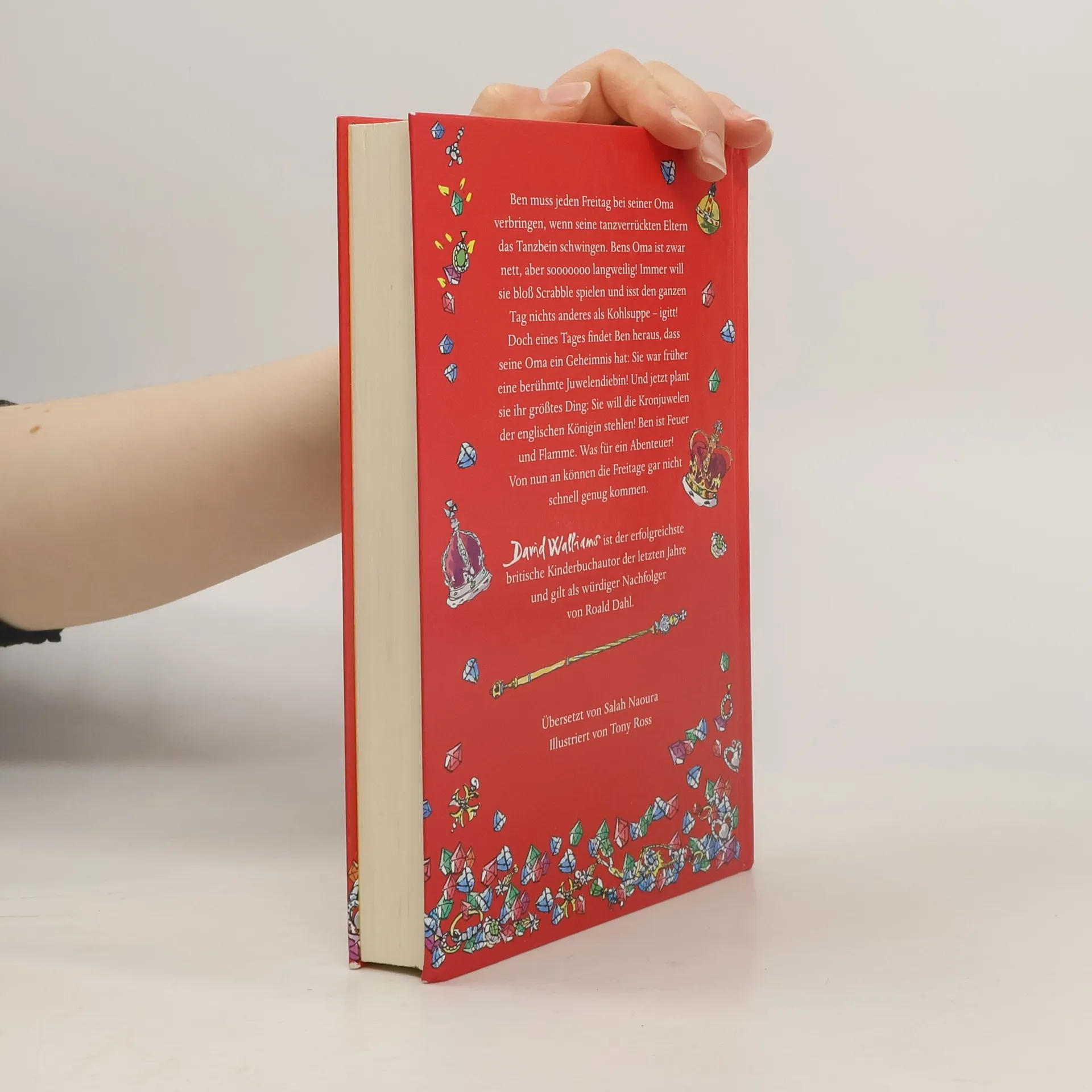 Ben muss jeden Freitag bei seiner Oma verbringen, wenn seine tanzverrückten Eltern das Tanzbein schwingen. Bens Oma ist zwar nett, aber sooooooo langweilig! Immer will sie bloß Scrabble spielen und isst den ganzen Tag nichts anderes als Kohlsuppe – igitt! Doch eines Tages findet Ben heraus, dass seine Oma ein Geheimnis hat: Sie war früher eine berühmte Juwelendiebin! Und jetzt plant sie ihr größtes Ding: Sie will die Kronjuwelen der englischen Königin stehlen! Ben ist Feuer und Flamme. Was für ein Abenteuer! Von nun an können die Freitage gar nicht schnell genug kommen. Ein Buch für Jungen und Mädchen ab 10