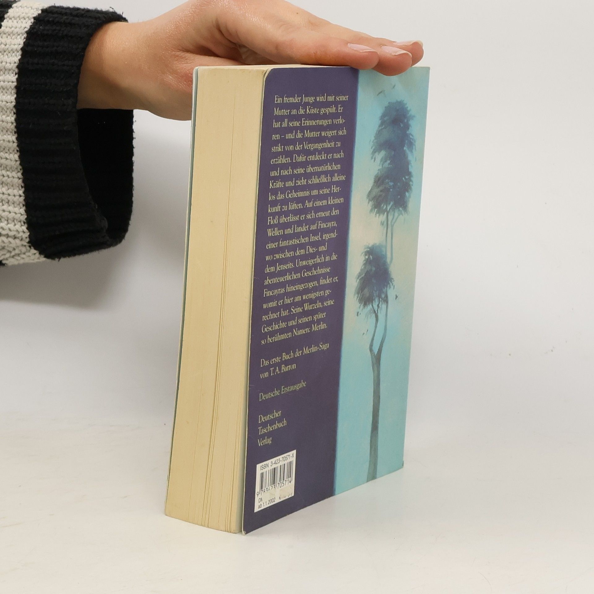 Farbenreich, poetisch und voller Fantasie schildert Thomas A. Barron die Jugend des weisen Zauberers Merlin. Ein Junge wird an die Küste von Wales gespült, ohne Erinnerungen und Namen, an der Seite einer Frau mit saphirblauen Augen, die sich als seine Mutter Branwen vorstellt. In einer abgelegenen Hütte, wo Branwen als Hexe gilt, lehrt sie Emrys die Sagen der Griechen und das Wissen der keltischen Druiden, doch über seine Vergangenheit schweigt sie. Als Emrys an seinem Namen zweifelt und seine übernatürlichen Fähigkeiten sowie deren dunkle Seite entdeckt, flieht er, um seine Wurzeln und das Geheimnis seiner magischen Kräfte zu ergründen. Auf der Suche nach seiner Identität gelangt er an einen nebligen Ort in der ›Zwischenwelt‹: Fincayra, ein Ort voller Wunder, der zwischen unserer Welt und der Welt des Geistes liegt. Dort taucht Emrys in eine faszinierende Duft- und Farbenwelt ein, muss jedoch bald erkennen, dass die Schönheit der Insel von den bösen Mächten des Königs Stangmar bedroht wird. Es scheint, als halte er den Schlüssel zur Rettung Fincayras in Händen. Barron lässt den Jungen seine Gedanken und Gefühle schildern, seine Haltlosigkeit und Verlorenheit, sowie die Freude und Zweifel über seine magischen Kräfte.