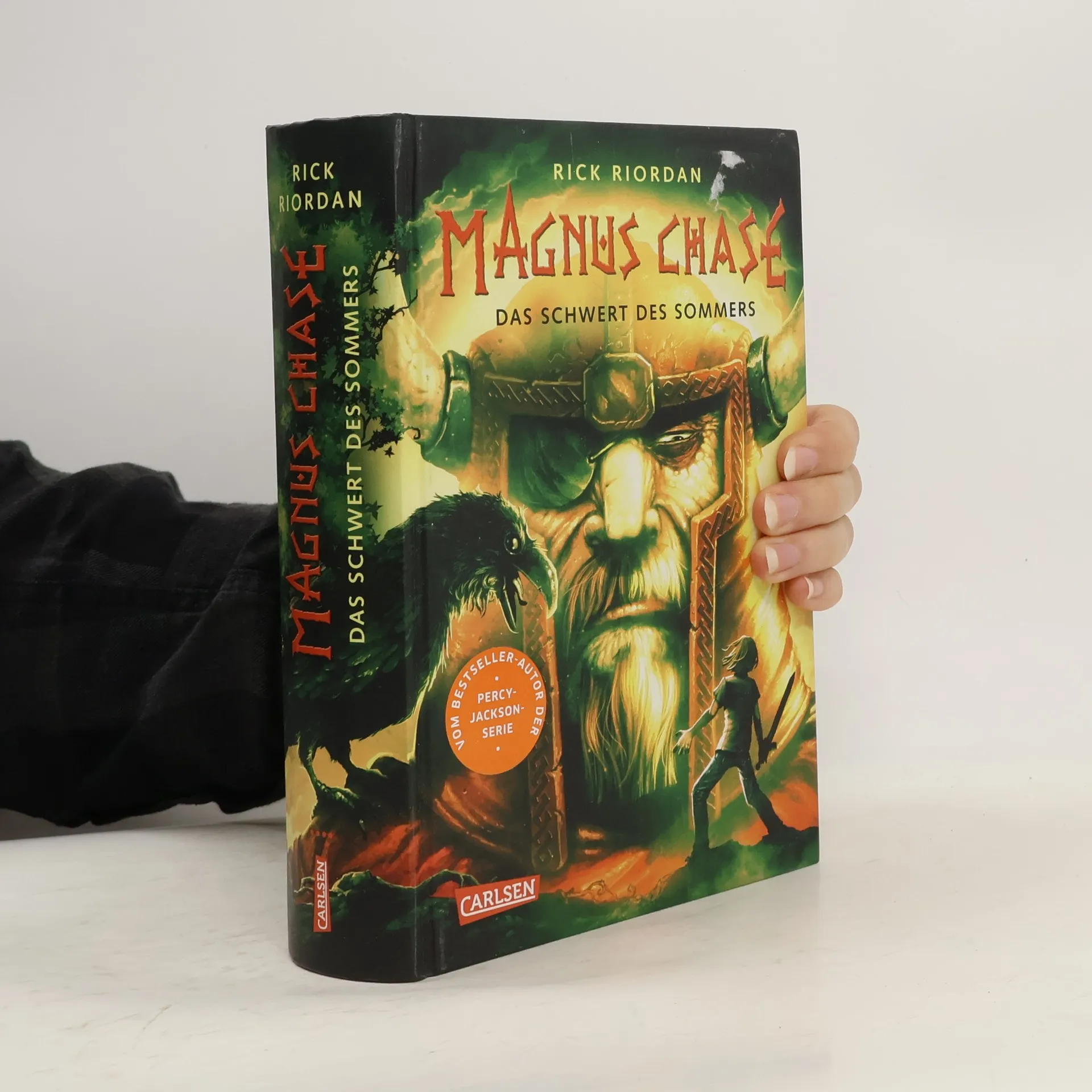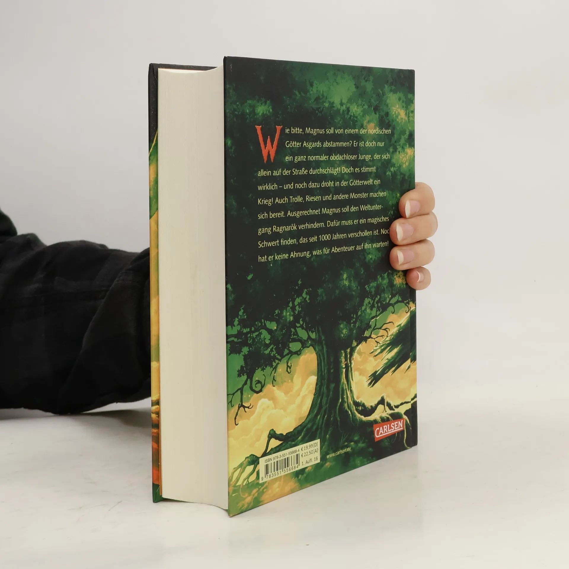 Nach dem Tod seiner Mutter lebt Magnus allein auf der Straße, ohne seinen Vater zu kennen. Als sein Onkel ihn findet, erfährt er, dass er von einem der nordischen Götter Asgards abstammt. Doch die Götter rüsten sich für den Krieg, während Trolle, Riesen und andere Monster sich ebenfalls vorbereiten. Magnus wird auserwählt, Ragnarök, den Weltuntergang, zu verhindern. Um dies zu erreichen, muss er ein seit 1000 Jahren verschwundenes magisches Schwert finden. Seine Reise erfordert zahlreiche Abenteuer, Kämpfe gegen gefährliche Kreaturen und Verhandlungen mit Göttern und Riesen. Zudem muss er seine göttlichen Fähigkeiten trainieren und lernen, Freundschaften zu schließen. In dieser Fantasy-Trilogie bringt der Autor alte Sagen und Legenden in moderne Geschichten und begeistert Leser*innen weltweit für die nordische Mythologie. Die Geschichte ist geprägt von Humor, Heldenmut und fantastischen Elementen, die sowohl junge Leser ab 12 Jahren als auch Fans der nordischen Mythologie fesseln. Feuerriesen, Walküren und Götter machen diese Erzählung zu einem packenden Erlebnis.