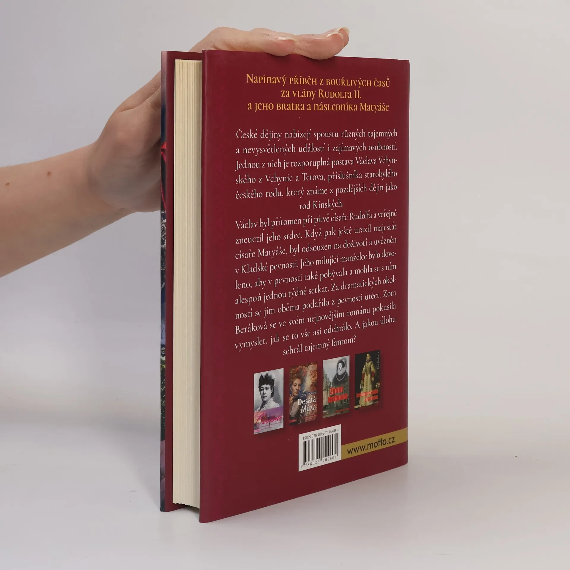 České dějiny nabízejí spoustu různých tajemných a nevysvětlených událostí i zajímavých osobností. Jednou z nich je rozporuplná postava Václava Vchynského z Vchynic a Tetova, příslušníka starobylého českého rodu, který známe z pozdějších dějin jako rod Kinských. Jeho napínavý příběh se navíc odehrál v rušné době vlády Rudolfa II. a jeho bratra a následníka Matyáše. Václav byl přítomen při pitvě císaře Rudolfa a veřejně zneuctil jeho srdce. Když pak ještě urazil majestát císaře Matyáše, byl odsouzen na doživotí a uvězněn v Kladské pevnosti. Jeho milující manželce bylo dovoleno, aby v pevnosti také pobývala a mohla se s ním alespoň jednou týdně setkat. Za dramatických okolností se jim oběma podařilo z pevnosti utéct. Zora Beráková se ve svém nejnovějším románu pokusila vymyslet, jak se to vše odehrálo. A jakou úlohu sehrál tajemný fantom?