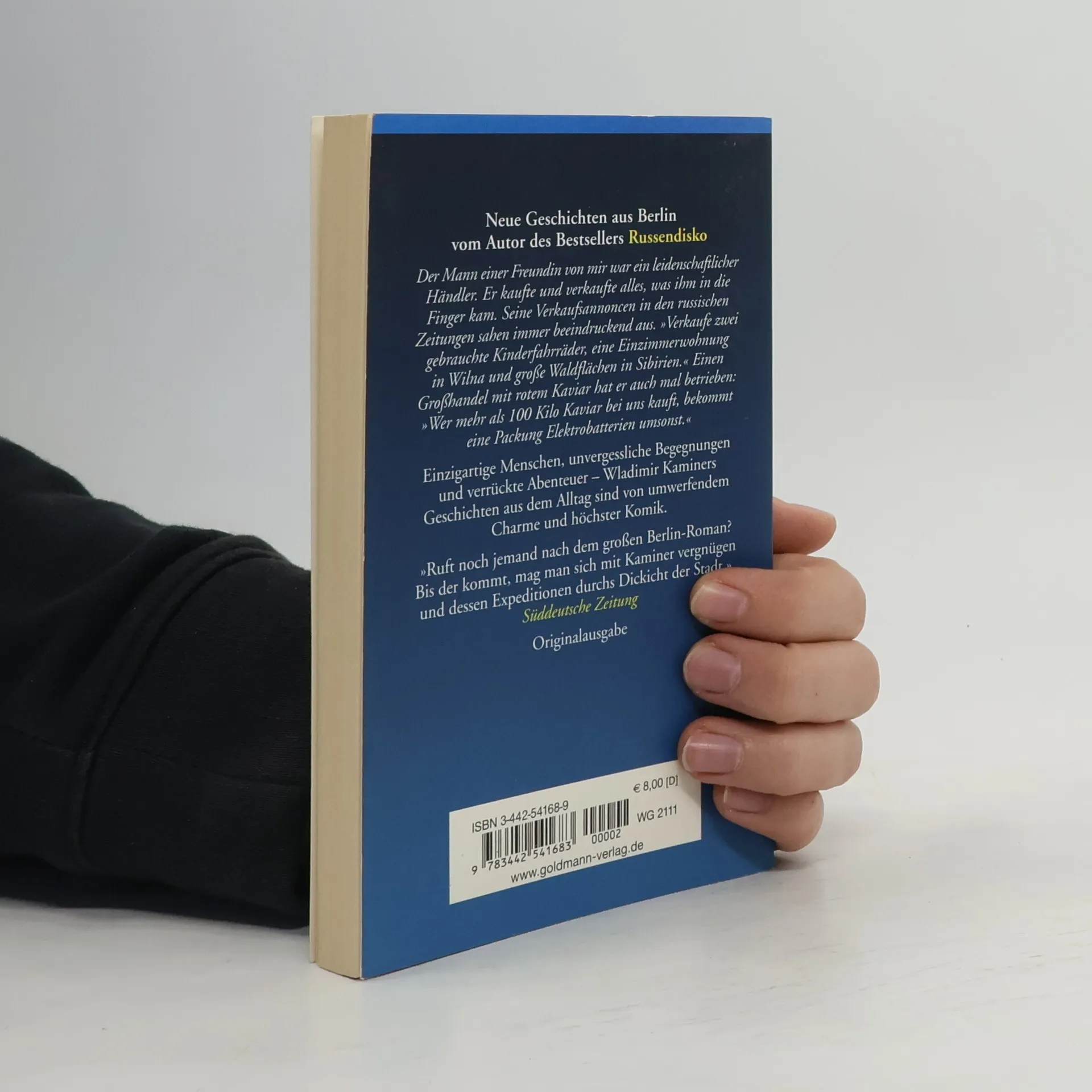 Wladimir Kaminer gelingt es, Deutschland als ein faszinierendes Panoptikum bemerkenswerter Menschen und skurriler Schicksale darzustellen. Einkaufen kann hier zu einem Abenteuer werden, wie auf der Schönhauser Allee, wo Vietnamesen ohne Sprachkenntnisse und Zählvermögen den „Laden Lebensmittel“ führen. Die Waren werden nach Verpackung sortiert, und die Preise richten sich nach der Größe. Wenn den Besitzern das Geld ausgeht, versuchen sie ihr Glück im Spielsalon „Pure Freude“, betrieben von Erik aus Baku, einem ehemaligen Musiker der ersten Heavy Metal Band Aserbaidschans. Überall in der Stadt kann man unerwartete Entdeckungen machen. Ein überfüllter Müllcontainer wird zur Schatztruhe einer Bibliothek, die interessante Werke birgt, wie „Stilistische Grundtendenzen in Lenins Sprache“ und die „Blechtrommel“. Auch russische Lyrik, inklusive Kriegsgedichte, findet sich zwischen Spinatresten. Tragisch ist das Schicksal eines Restaurants, das beim Versuch, gebratenes Sushi zu kreieren, in Flammen aufging. Auf den Straßen Berlins gibt es immer etwas zu erleben, und Kaminer fängt diese Vielfalt mit seinem einzigartigen Humor und scharfen Blick für das Absurde ein.
