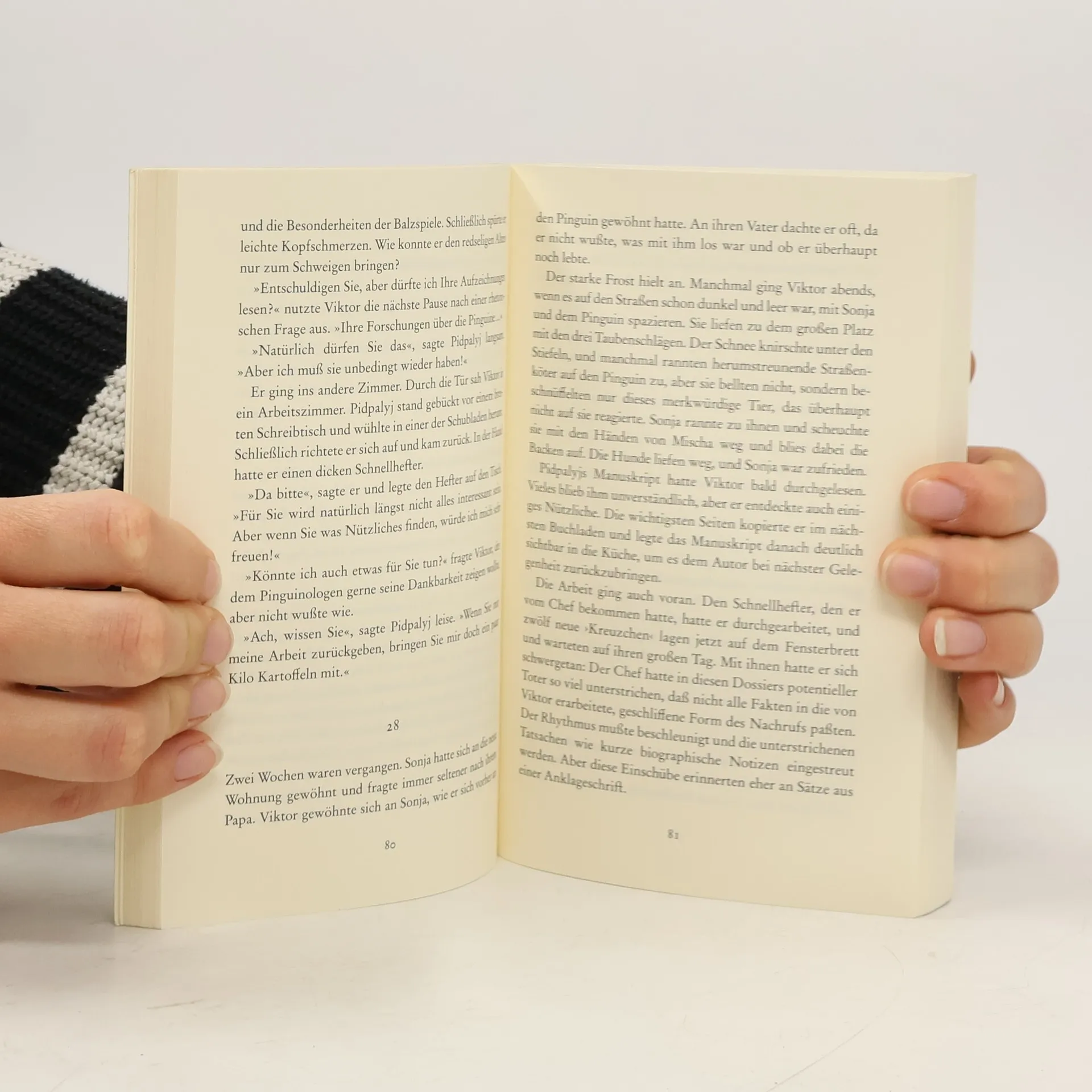 Als Tagträumer hat es Viktor schwer im Kiew der Neureichen und der Mafia: Ohne Geld und ohne Freundin lebt er mit dem Pinguin Mischa und schreibt unvollendete Romane für die Schublade. Zum Überleben verfasst er für eine große Tageszeitung Nekrologe über Berühmtheiten, die allerdings noch gar nicht gestorben sind. Wie jeder Autor möchte Viktor seine Texte auch veröffentlicht sehen. Ein Wunsch, der beängstigend schnell in Erfüllung geht.