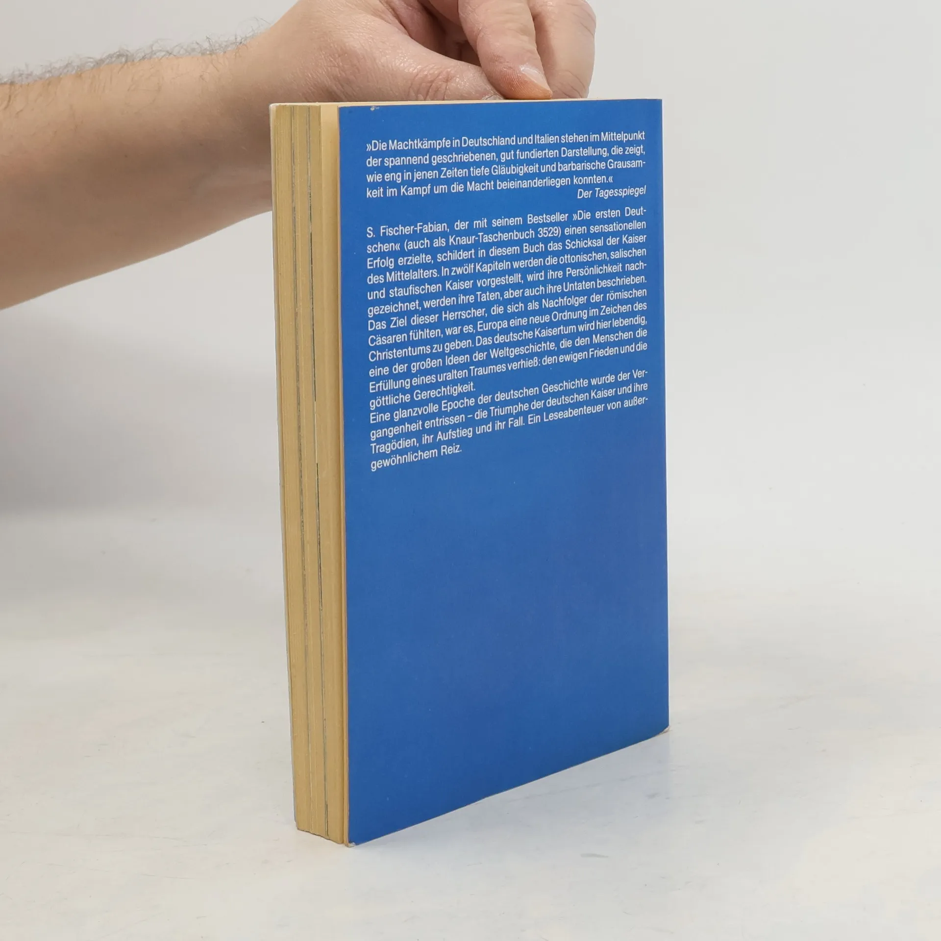 S. Fischer-Fabian schildert in diesem Buch das Schicksal der Kaiser des Mittelalters. In zwölf Kapiteln werden die ottonischen, salischen und staufischen Kaiser vorgestellt, werden ihre Taten, aber auch ihre Untaten beschrieben. Das Ziel dieser Herrscher war es, Europa eine neue Ordnung im Zeichen des Christentums zu geben. Eine glanzvolle Epoche der deutschen Geschichte wurde der Vergangenheit entrissen - die Triumphe der deutschen Kaiser und ihre Tragödien, ihr Aufstieg und ihr Fall.