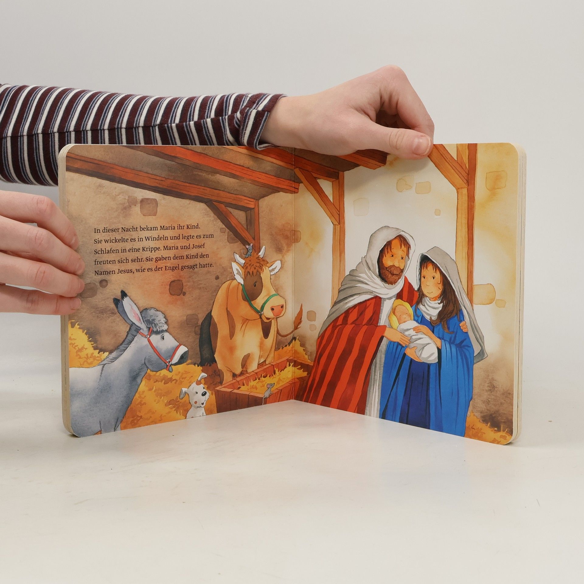 Die Weihnachtsgeschichte als Pappbilderbuch in der Reihe „Dein kleiner Begleiter" für Kinder ab 2 Jahren. Mit einfachen Worten und farbenfrohen Bildern lernen hier Kinder die biblische Geschichte von Weihnachten kennen: Von der Familie, die keinen Platz in der Herberge finden konnte, den Hirten auf dem Feld und den drei Königen aus dem Morgenland wird hier anschaulich erzählt.