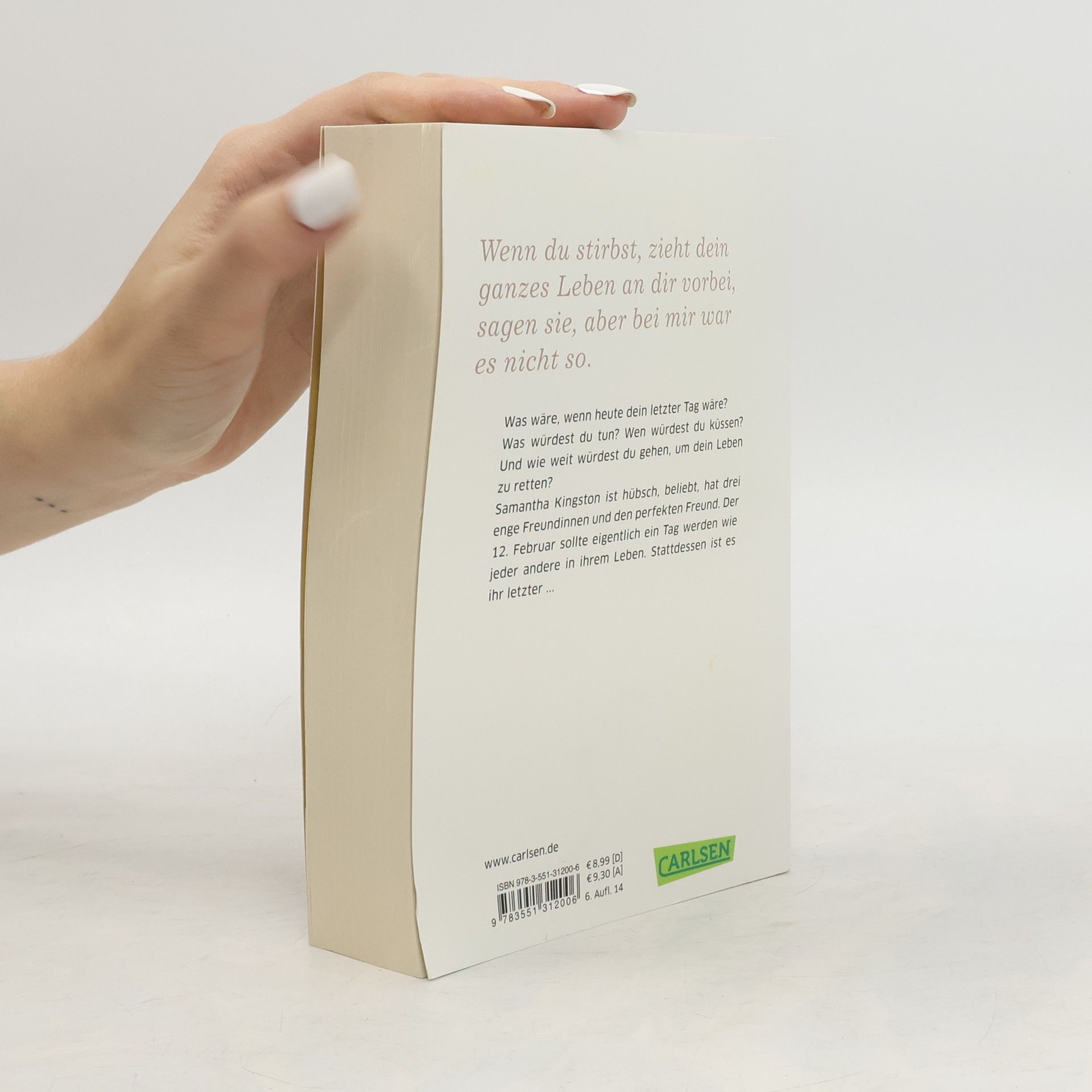 Das Buch zum Film - ab dem 1. Juni 2017 im Kino, mit Zoey Deutch in der Hauptrolle! Was wäre, wenn heute dein letzter Tag wäre? Was würdest du tun? Wen würdest du küssen? Und wie weit würdest du gehen, um dein Leben zu retten? Samantha Kingston ist hübsch, beliebt, hat drei enge Freundinnen und den perfekten Freund. Der 12. Februar sollte eigentlich ein Tag werden wie jeder andere in ihrem Leben: mit ihren Freundinnen zur Schule fahren, die sechste Stunde schwänzen, zu Kents Party gehen. Stattdessen ist es ihr letzter Tag. Sie stirbt nach der Party bei einem Autounfall. Und wacht am Morgen desselben Tages wieder auf. Siebenmal ist sie gezwungen diesen Tag wieder und wieder zu durchleben. Und begreift allmählich, dass es nicht darum geht, ihr Leben zu retten. Zumindest nicht so, wie sie dachte ... Klug, vielschichtig und von herzzerreißender Schönheit - das grandiose Debüt von Bestseller-Autorin Lauren Oliver!