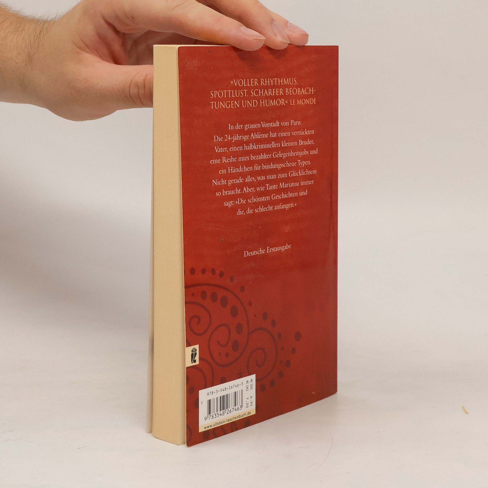 In der grauen Vorstadt von Paris: Die 24jährige Ahlème hat einen verrückten Vater, einen halbkriminellen kleinen Bruder, eine Reihe mies bezahlter Gelegenheitsjobs und ein Händchen für bindungsscheue Typen. Nicht gerade alles, was man zum Glücklichsein so braucht. Aber, wie Tante Mariatou immer sagt: ' Die schönsten Geschichten sind die, die schlecht anfangen.'