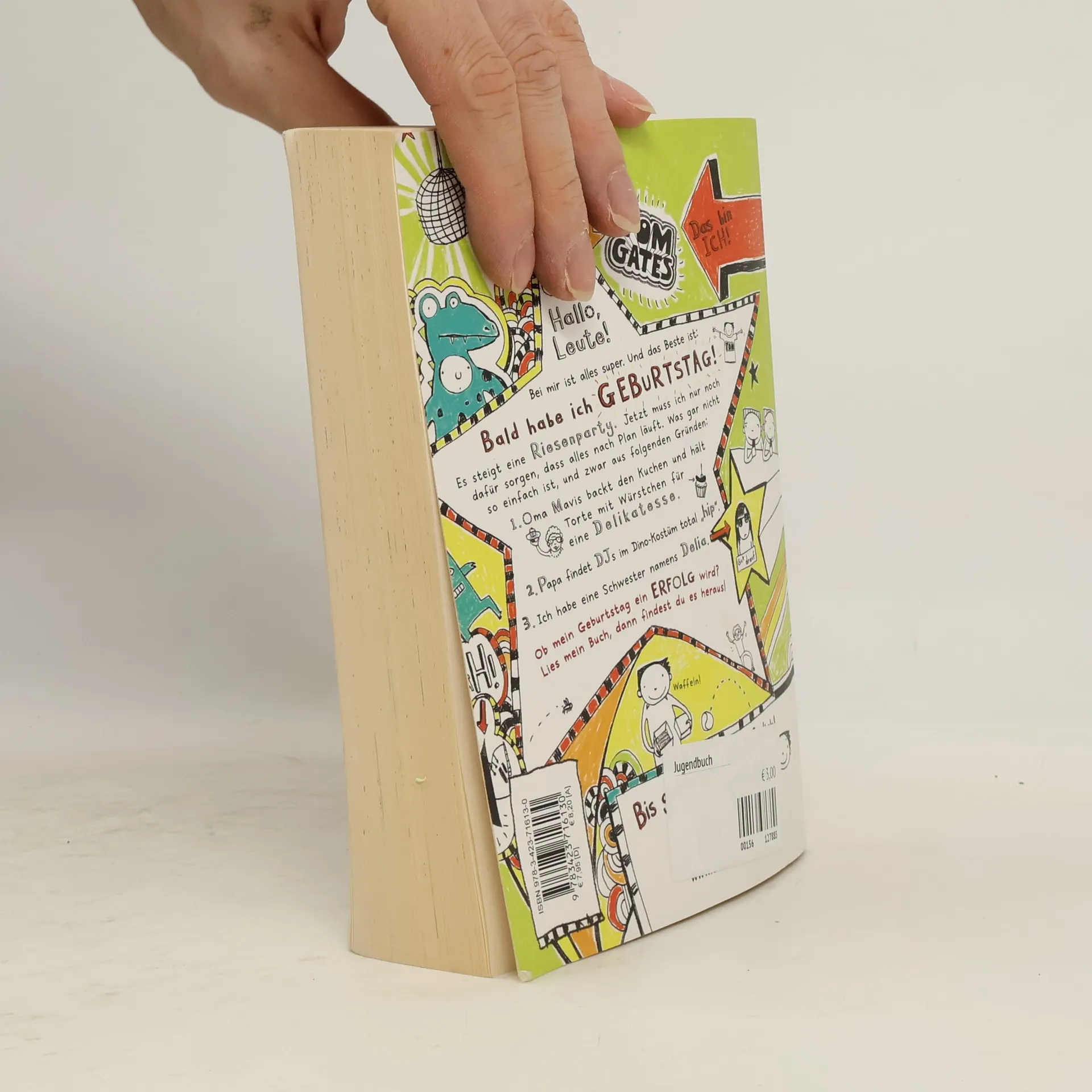 Happy Birthday, Tom Gates! Tom ist total aus dem Häuschen. Die Vorbereitungen für seine Geburtstagsparty laufen auf Hochtouren. Nun muss er nur noch sicher gehen, dass alles nach Plan läuft. Was gar nicht so einfach ist, wenn man eine Oma hat, die Geburtstagstorten mit Würstchen-Garnitur für eine Delikatesse hält. Oder Papa meint, dass ein DJ im Dino-Kostüm total angesagt ist. Oh Mann! Aber Tom lässt sich von so was natürlich nicht kleinkriegen und sorgt mit seiner glorreichen Erfindungsgabe dafür, dass die Party ein Bombenerfolg wird!