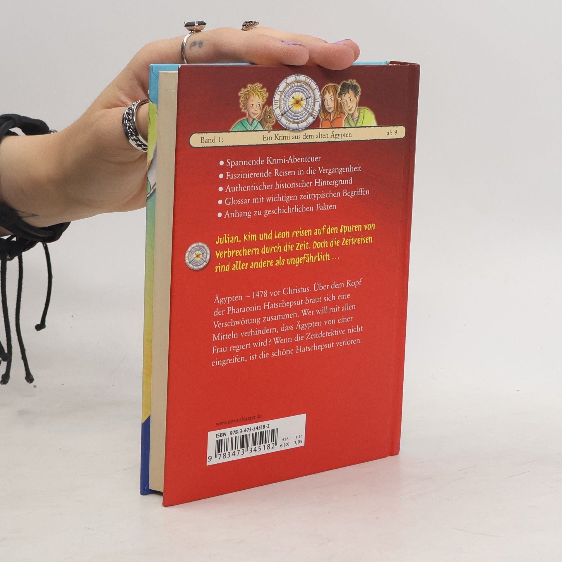 Ägypten - 1478 vor Christus. Über dem Kopf der Pharaonin Hatschepsut braut sich eine Verschwörung zusammen. Wer will mit allen Mitteln verhindern, dass Ägypten von einer Frau regiert wird? Wenn die Zeitdetektive nicht eingreifen, ist die schöne Hatschepsut verloren.