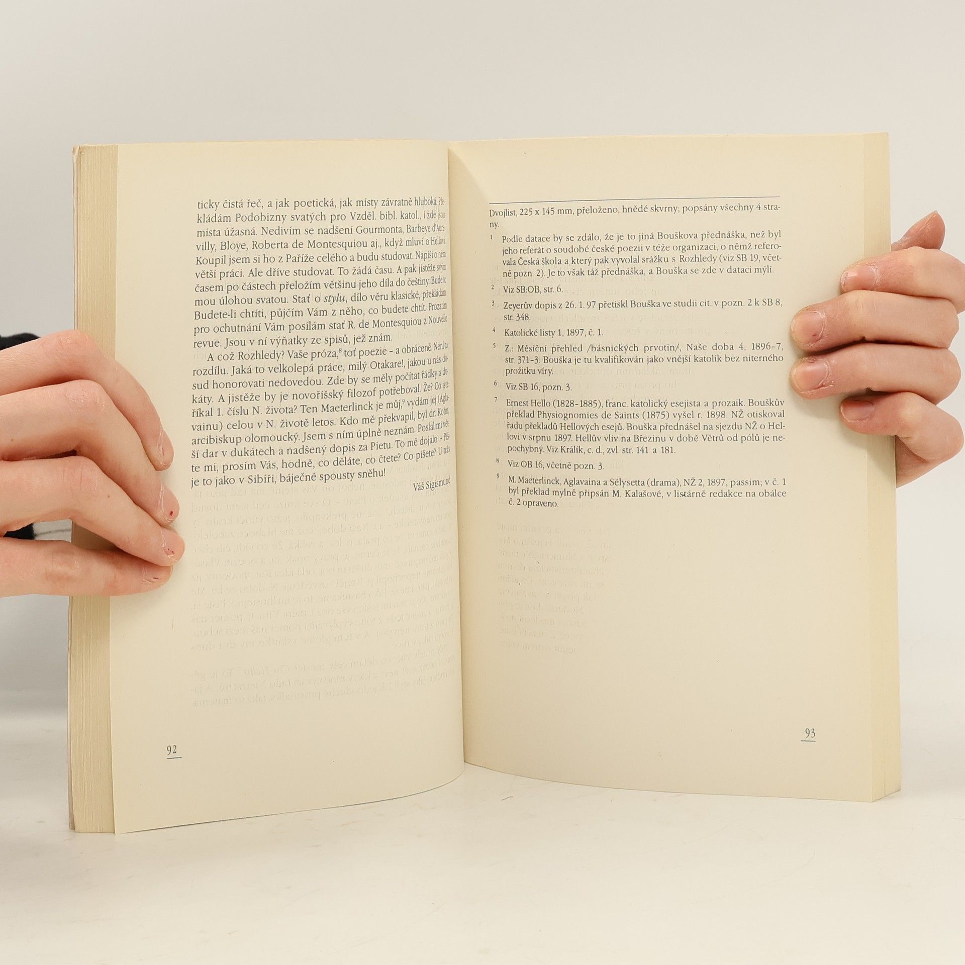 Vzájemná korespondence Otokara Březiny a Sigismunda Boušky je dialogem dvou vyhraněných individualit, básnicky sice nerovnocenných, ale významně se podílejících na obrodě duchovního dění, přesahujícího rámec moderny; je přátelsky vlídných rozhovorem básníka Tajemných dálek a snad nejvýznamnější osobnosti Katolické moderny.