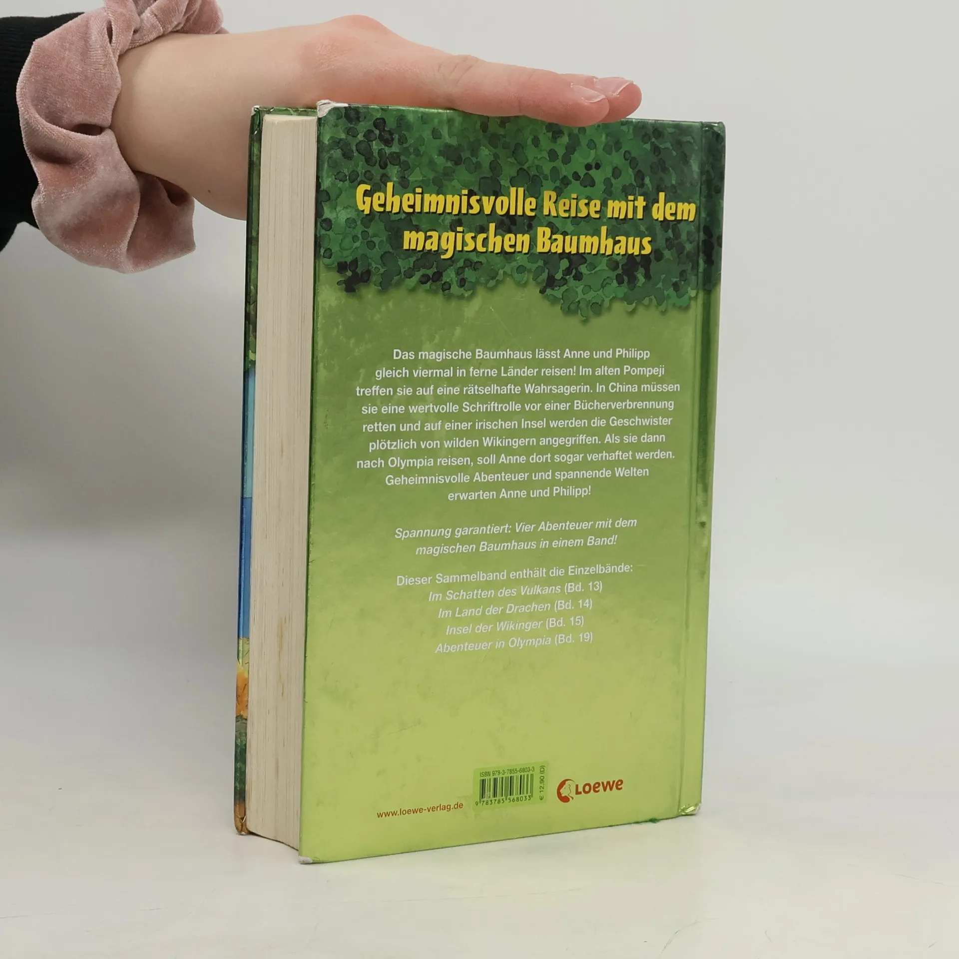 Das magische Baumhaus lässt Anne und Philipp gleich viermal in ferne Länder reisen! Im alten Pompeji treffen sie auf eine rätselhafte Wahrsagerin. In China müssen sie eine wertvolle Schriftrolle vor einer Bücherverbrennung retten und auf einer irischen Insel werden die Geschwister plötzlich von wilden Wikingern angegriffen. Als sie dann nach Olympia reisen, soll Anne dort sogar verhaftet werden! Geheimnisvolle Abenteuer und spannende Welten erwarten Anne und Philipp. Dieser Sammelband enthält die Einzelbände „Im Schatten des Vulkans“, „Im Land der Drachen“, „Insel der Wikinger“, „Abenteuer in Olympia“.
