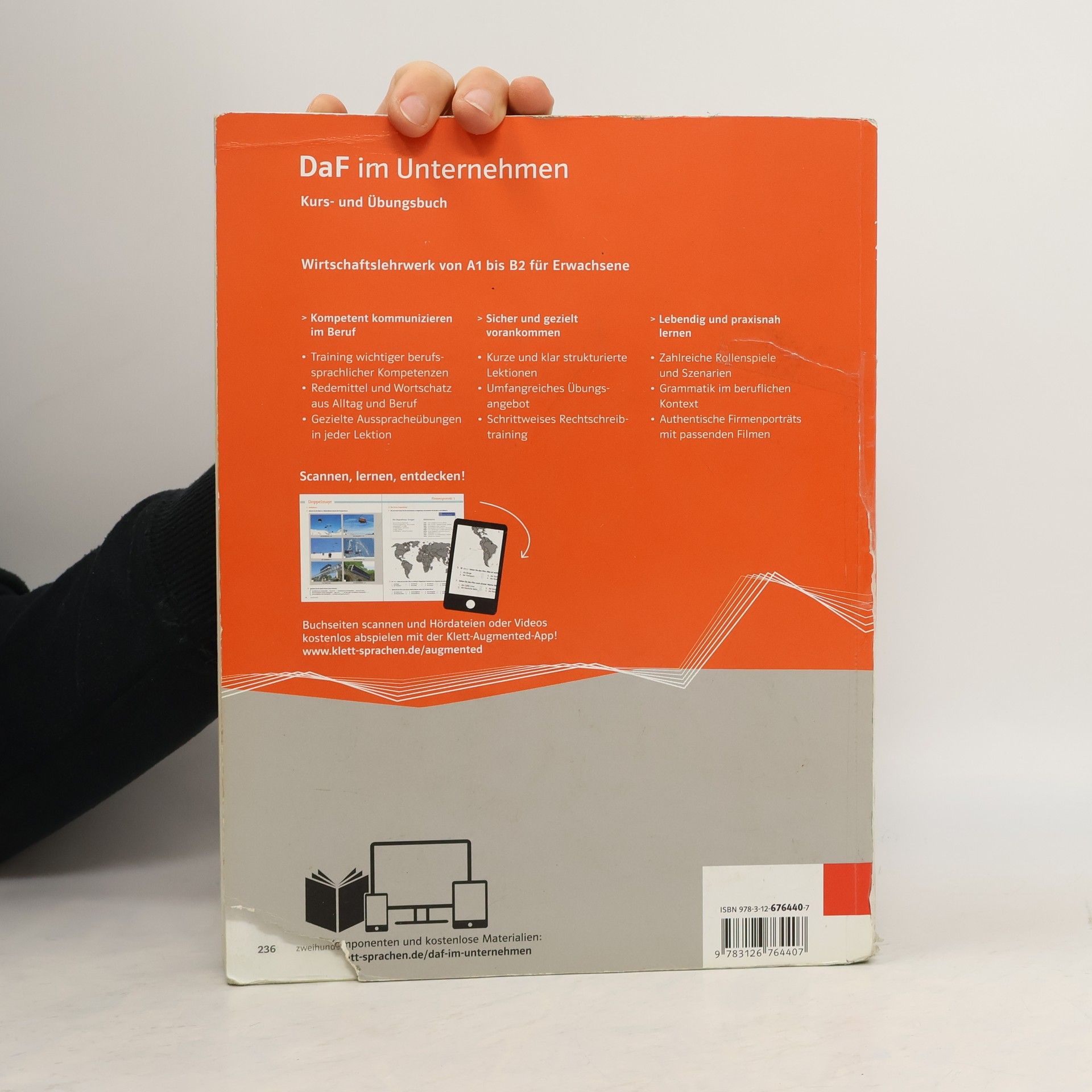Das Kurs- und Übungsbuch DaF im Unternehmen trainiert wichtige berufssprachlicher Kompetenzen und Redemittel und Wortschatz aus Alltag und Beruf. In jeder Lektion gibt es gezielte Ausspracheübungen. Dank schrittweisem Rechtschreibtraining und zahlreichen Rollenspielen kommen Deutschlernende schnell voran. Die Grammatik wird im beruflichen Kontext vermittelt. Das besondere Extra: Authentische Firmenporträts mit passenden Filmen sind im separaten Medienpaket oder kostenlos online erhältlich. DaF im Unternehmen eignet sich auch für ESF-BAMF-Kurse und für die berufsbezogene Deutschsprachförderung (DeuFöV).