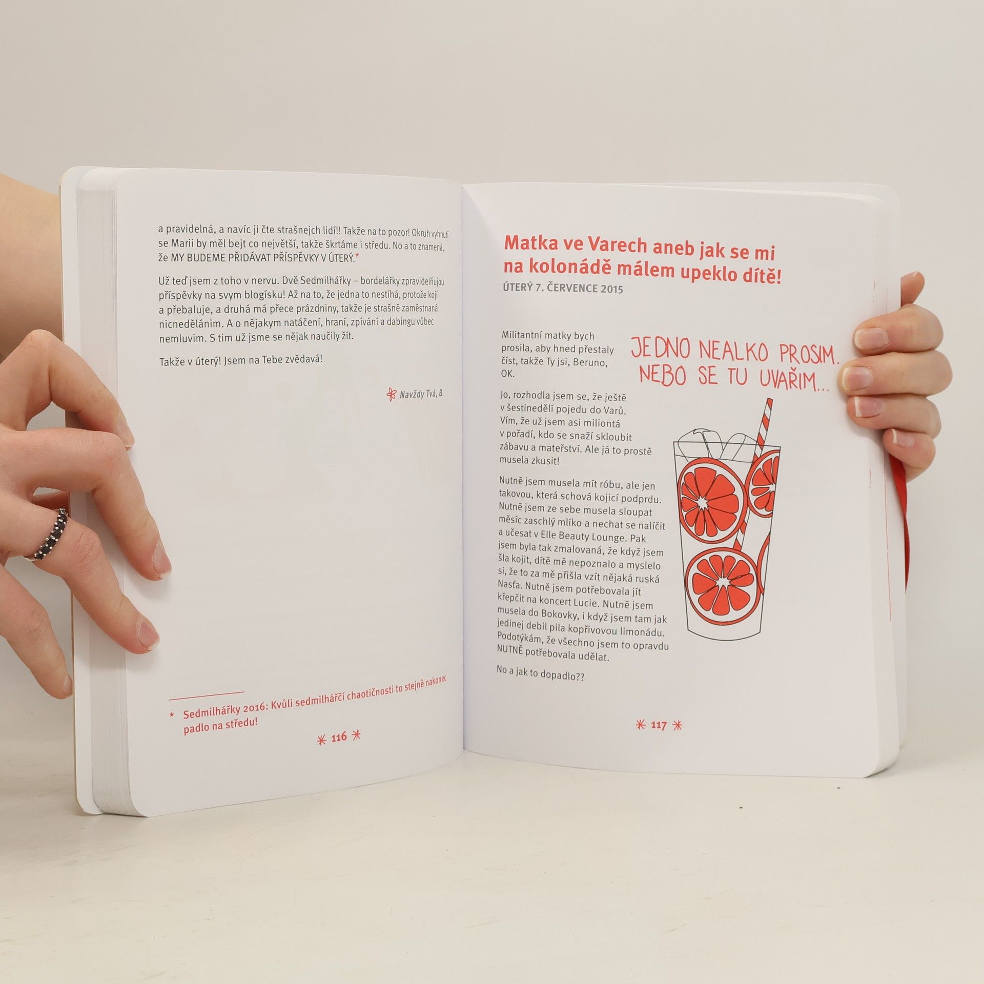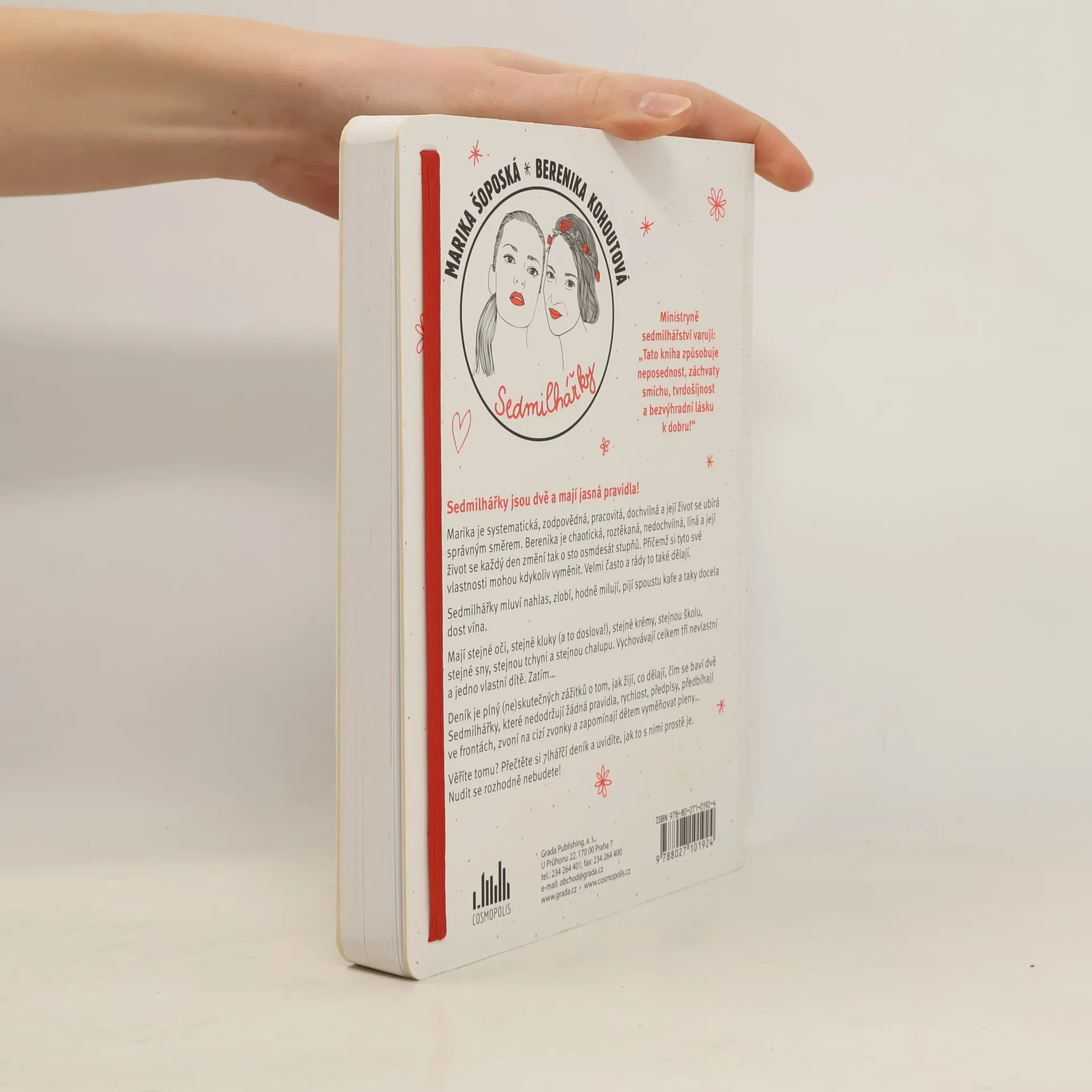 Sedmilhářky jsou dvě a mají jasná pravidla! Marika je systematická, zodpovědná, pracovitá, dochvilná a její život se ubírá správným směrem. Berenika je chaotická, roztěkaná, nedochvilná, líná a její život se každý den změní tak o sto osmdesát stupňů. Přičemž si tyto své vlastnosti mohou kdykoliv vyměnit. Velmi často a rády to také dělají. Sedmilhářky mluví nahlas, zlobí, hodně milují, pijí spoustu kafe a taky docela dost vína. Mají stejné oči, stejné kluky (a to doslova!), stejné krémy, stejnou školu, stejné sny, stejnou tchyni a stejnou chalupu. Vychovávají celkem tři nevlastní a jedno vlastní dítě. Zatím… Deník je plný (ne)skutečných zážitků o tom, jak žijí, co dělají, čím se baví dvě Sedmilhářky, které nedodržují žádná pravidla, rychlost, předpisy, předbíhají ve frontách, zvoní na cizí zvonky a zapomínají dětem vyměňovat pleny… Věříte tomu? Přečtěte si 7lhářčí deník a uvidíte, jak to s nimi prostě je. Nudit se rozhodně nebudete! Ministryně sedmilhářství varují: „Tato kniha způsobuje neposednost, záchvaty smíchu, tvrdošíjnost a bezvýhradní lásku k dobru!“