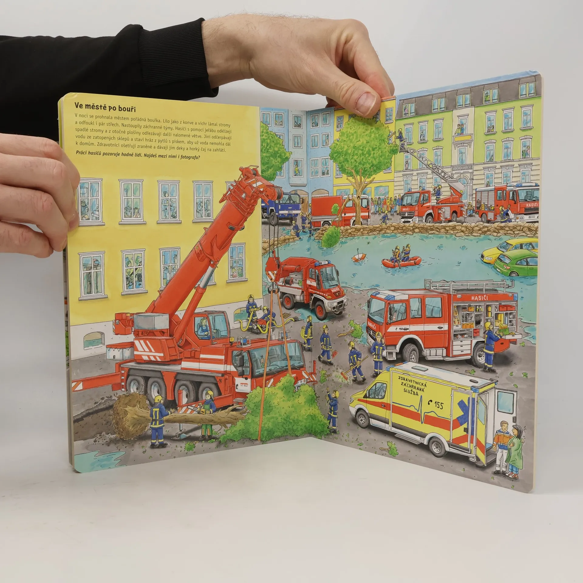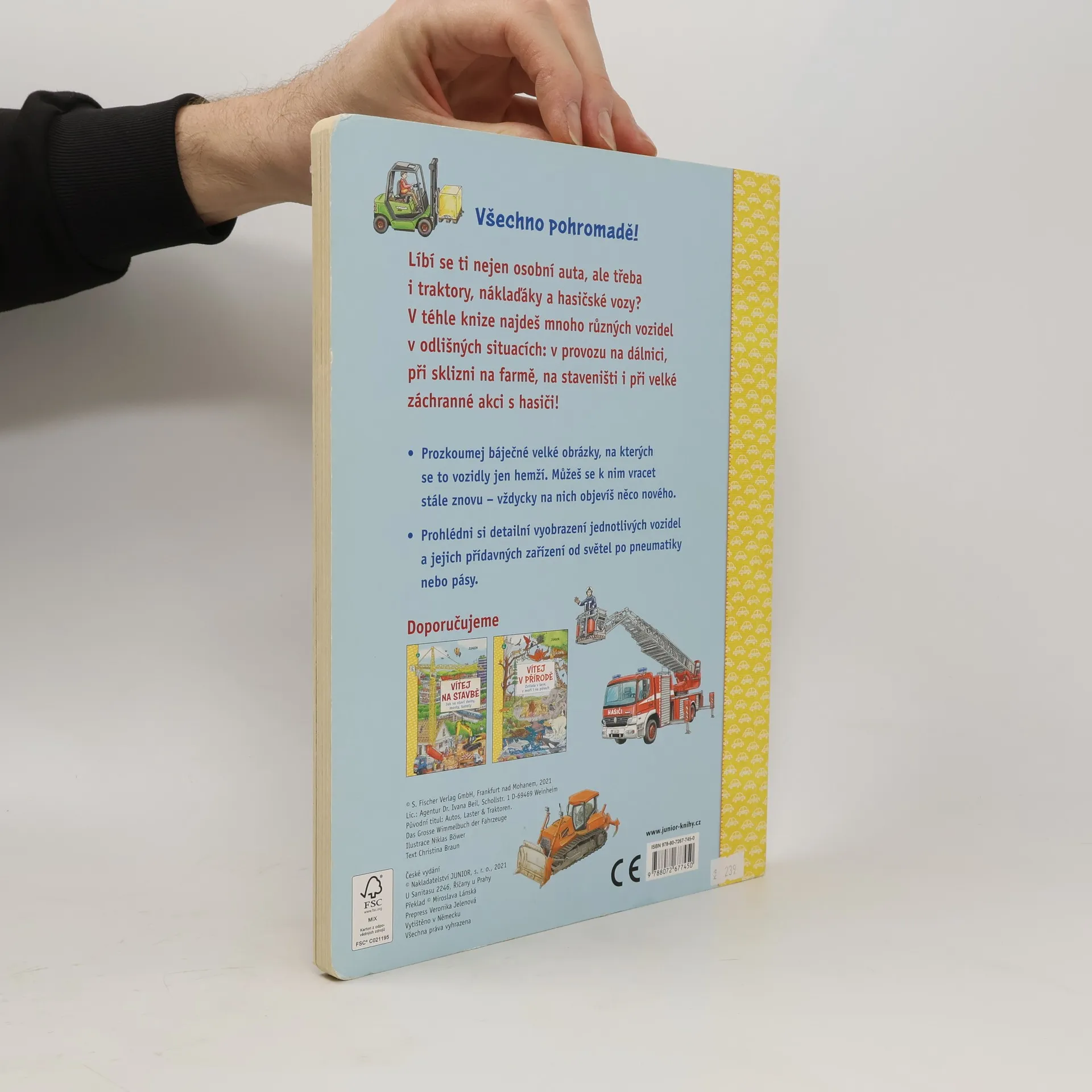 Líbí se ti nejen osobní auta, ale třeba i traktory, náklaďáky a hasičské vozy? V téhle knize najdeš mnoho různých vozidel v odlišných situacích: v provozu na dálnici, při sklizni na farmě, na staveništi i při velké záchranné akci s hasiči! Prozkoumej báječné velké obrázky, na kterých se to vozidly jen hemží. Můžeš se k nim vracet stále znovu – vždycky na nich objevíš něco nového. Prohlédni si detailní vyobrazení jednotlivých vozidel a jejich přídavných zařízení od světel po pneumatiky nebo pásy. Kniha je určená dětem od dvou let.