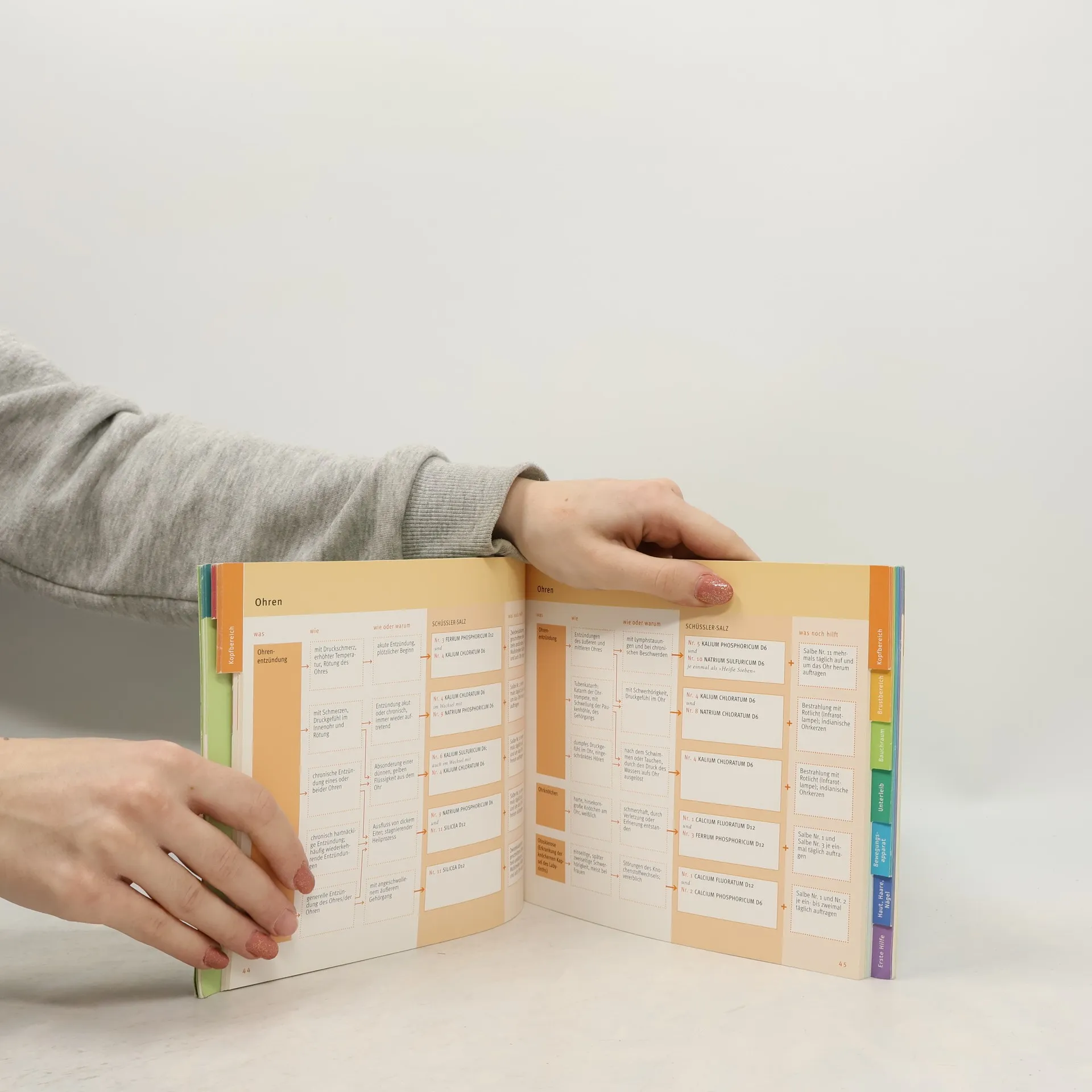 Schüßler-Salze sind wunderbar geeignet zur Selbstbehandlung von Alltagsbeschwerden, doch manchmal fällt es schwer, auf die Schnelle das passende Mittel auszuwählen. Wer einen sicheren und schnellen Weg zum richtigen Mittel sucht, ist mit dem Konzept des Quickfinders optimal bedient. Mit Hilfe von übersichtlichen Diagramm-Tafeln wird die Selbstdiagnose sehr viel einfacher. In der kurzen, prägnanten Einführung erfährt der Leser alles, was er über Schüßler-Salze wissen muss. Im umfangreichen Beschwerdenkapitel, das nach Beschwerden von Kopf bis Fuß unterteilt ist, findet er neben dem richtigen Mittel bzw. der richtigen Kombination von Mitteln auch noch Hinweise auf zusätzliche naturheilkundliche Selbstbehandlungsmöglichkeiten. Zu diesen gibt es im Anhang genaue Anwendungshinweise, und natürlich fehlen auch Beschreibungen der einzelnen Salze nicht.