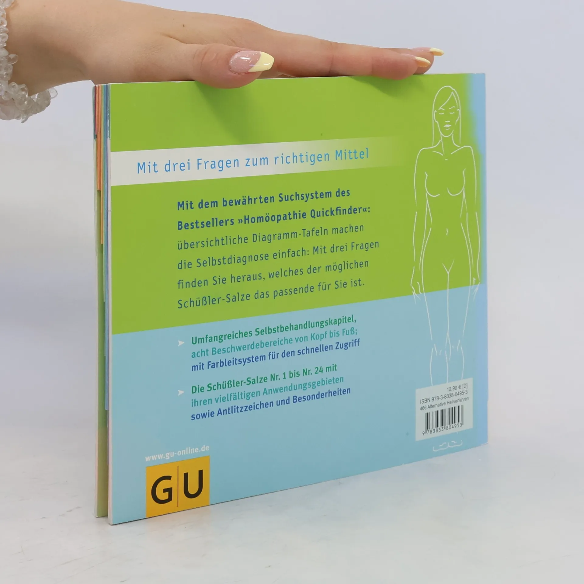 Schüßler-Salze sind wunderbar geeignet zur Selbstbehandlung von Alltagsbeschwerden, doch manchmal fällt es schwer, auf die Schnelle das passende Mittel auszuwählen. Wer einen sicheren und schnellen Weg zum richtigen Mittel sucht, ist mit dem Konzept des Quickfinders optimal bedient. Mit Hilfe von übersichtlichen Diagramm-Tafeln wird die Selbstdiagnose sehr viel einfacher. In der kurzen, prägnanten Einführung erfährt der Leser alles, was er über Schüßler-Salze wissen muss. Im umfangreichen Beschwerdenkapitel, das nach Beschwerden von Kopf bis Fuß unterteilt ist, findet er neben dem richtigen Mittel bzw. der richtigen Kombination von Mitteln auch noch Hinweise auf zusätzliche naturheilkundliche Selbstbehandlungsmöglichkeiten. Zu diesen gibt es im Anhang genaue Anwendungshinweise, und natürlich fehlen auch Beschreibungen der einzelnen Salze nicht.