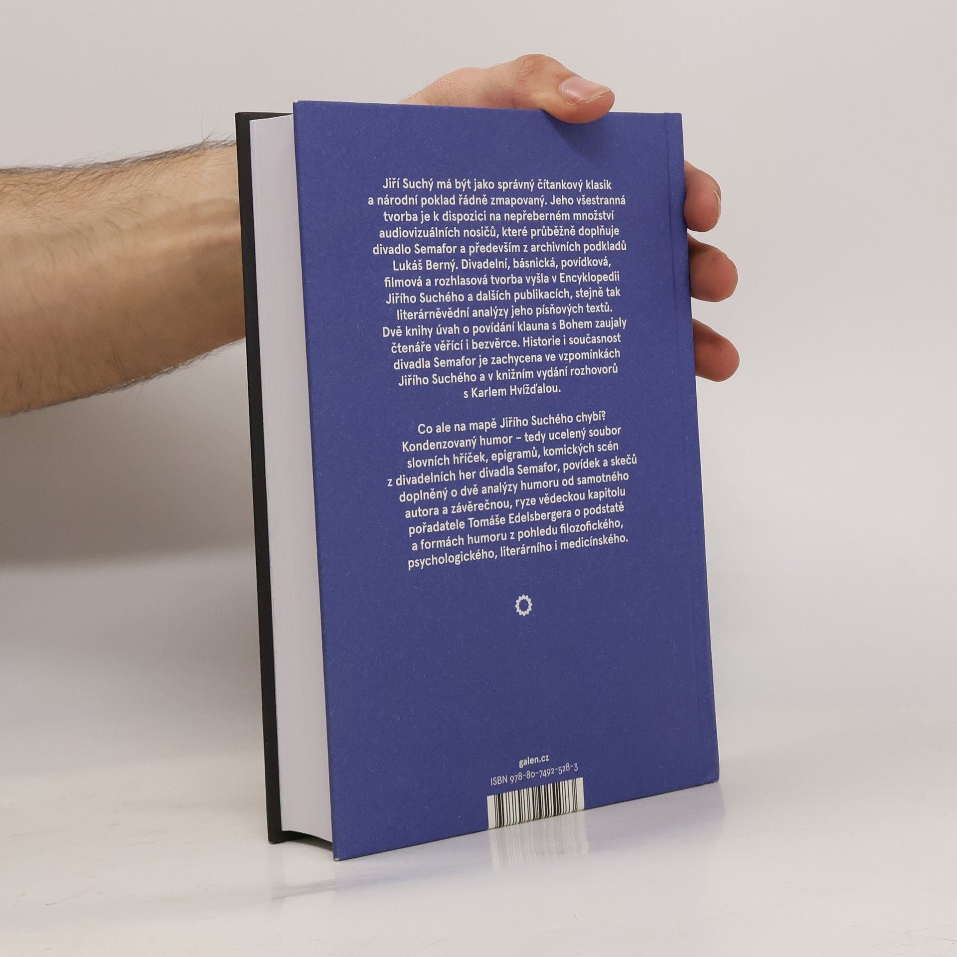 Jiří Suchý má být jako správný čítankový klasik a národní poklad řádně zmapovaný. Jeho všestranná tvorba je k dispozici na nepřeberném množství audiovizuálních nosičů, které průběžně doplňuje divadlo Semafor a především z archivních podkladů Lukáš Berný. Divadelní, básnická, povídková, filmová a rozhlasová tvorba vyšla v Encyklopedii Jiřího Suchého a dalších publikacích, stejně tak literárněvědní analýzy jeho písňových textů. Dvě knihy úvah o povídání klauna s Bohem zaujaly čtenáře věřící i bezvěrce. Historie i současnost divadla Semafor je zachycena ve vzpomínkách Jiřího Suchého a v knižním vydání rozhovorů s Karlem Hvížďalou. Co ale na mapě Jiřího Suchého chybí? Kondenzovaný humor – tedy ucelený soubor slovních hříček, epigramů, komických scén z divadelních her divadla Semafor, povídek a skečů doplněný o dvě analýzy humoru od samotného autora a závěrečnou, ryze vědeckou kapitolu pořadatele Tomáše Edelsbergera o podstatě a formách humoru z pohledu filozofického, psychologického, literárního i medicínského. OBSAH: Předmluva aneb Kdo se směje naposled, ten má dlouhý vedení (Radkin Honzák) * Přemejšlení o humoru * Hry * Epigramy a myšlenky * Říkadla * Lexikon pro zamilované * Dialogy a skeče * Úvahy * Obrana humorem * Humor je věda (Tomáš Edelsberger)