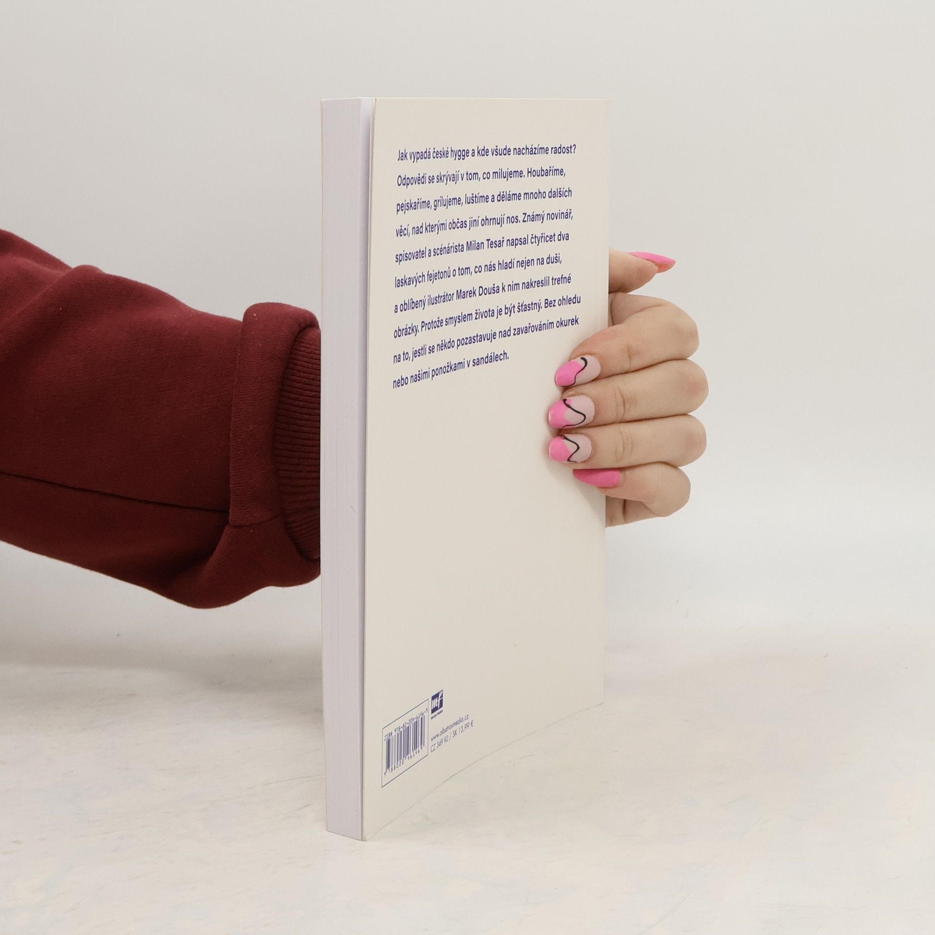 Jak vypadá české hygge a kde všude nacházíme radost? Odpovědi se skrývají v tom, co milujeme. Houbaříme, pejskaříme, grilujeme, luštíme a děláme mnoho dalších věcí, nad kterými občas jiní ohrnují nos. Známý novinář Milan Tesař napsal čtyřicet dva láskavých fejetonů o tom, co nás hladí nejen na duši, a oblíbený ilustrátor Marek Douša k nim nakreslil trefné obrázky. Protože smyslem života je být šťastný. Bez ohledu na to, jestli někdo ohrnuje nos nad zavařováním okurek nebo našimi ponožkami v sandálech.