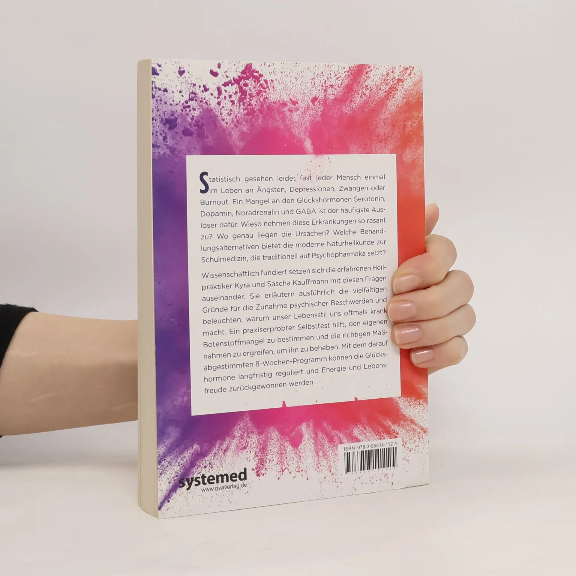 Burnout, Depressionen, Antriebslosigkeit – viele der weit verbreiteten psychischen Probleme sind auf einen Mangel an den Neurotransmittern Serotonin, Dopamin, Noradrenalin und GABA zurückzuführen. Verantwortlich für die unzureichende Bildung dieser Glückshormone sind Ernährungsfehler, Bewegungsmangel und unnatürliche Lichtverhältnisse. Mit dem wissenschaftlich fundierten Selbsttest der Heilpraktiker Kyra und Sascha Kauffmann kann ein Botenstoffmangel bestimmt werden. Bestimmte Lebensstilveränderungen und Behandlungsmethoden helfen, die körpereigenen Hormone zu aktivieren, um dauerhaft Energie und Lebensfreude zurückzugewinnen.