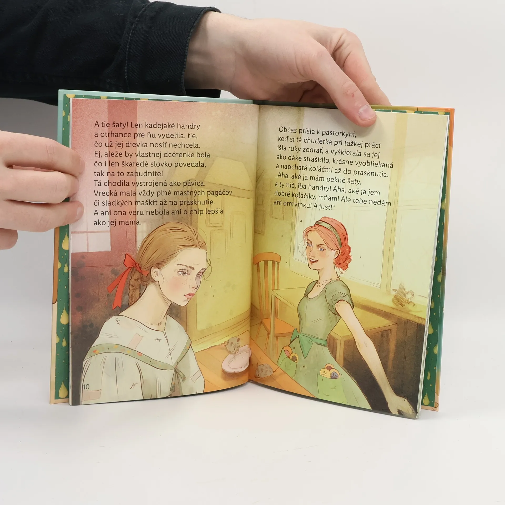 Mal raz jeden vdovec dcéru a tá už často chodievala do susedov, či už na priadky, či s inakšou robotou, ako to už dievčatá chodievajú. Lebo u susedov mala dobrú kamarátku, tiež vdovicinu dcéru. Nič nedbala na to, čo ľudia hovorili o kamarátkinej matke: že je ježibaba. K nej sa vždy pekne ukazovala, zaobchodila s ňou ako aj s vlastnou dcérou. Či napiekla postruhníkov, či už čo také mala v dome, vždy nadelila obom dievčatám rovnako. Naše dievča si ju veru pokladalo takmer za vlastnú matku...