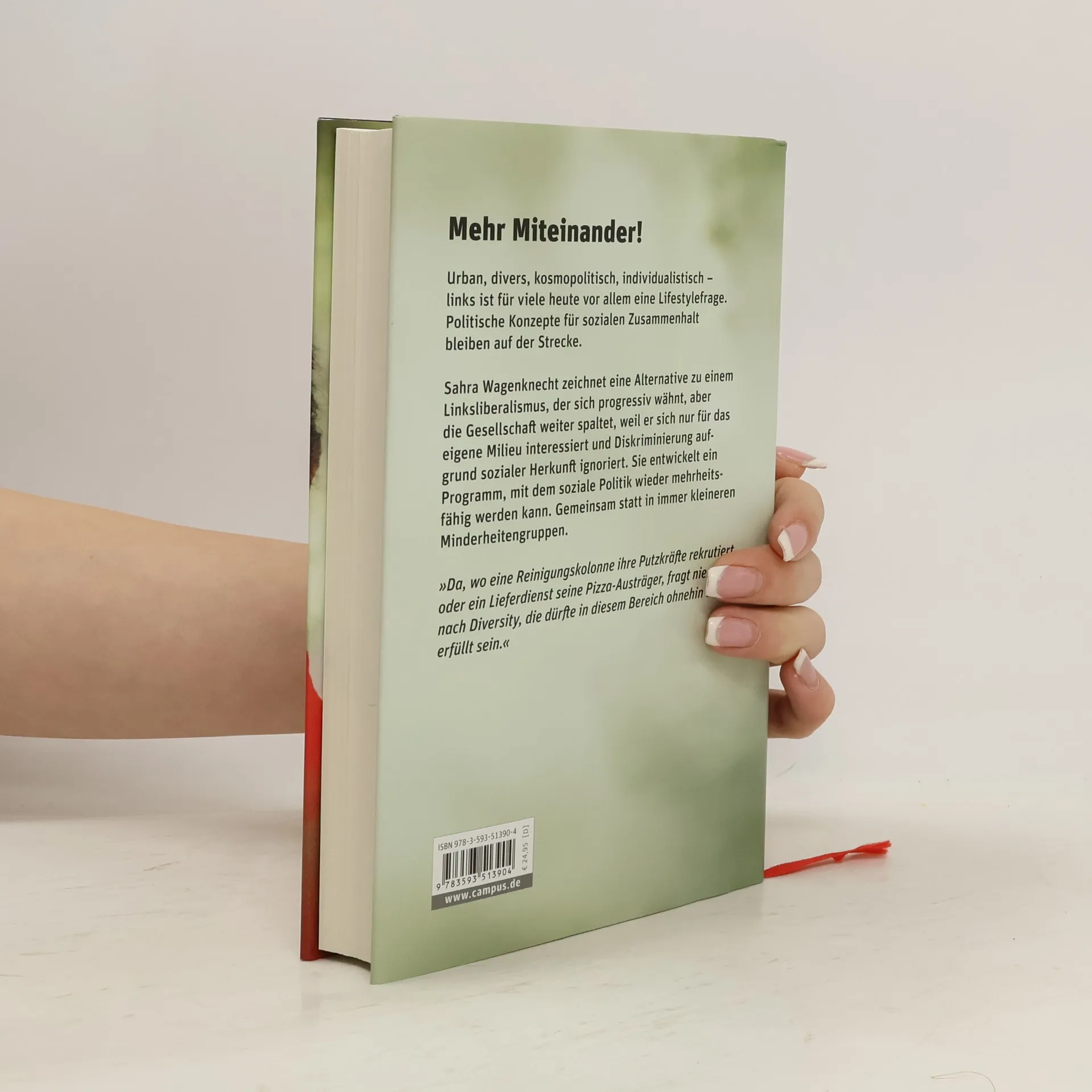 Urban, divers, kosmopolitisch, individualistisch – links ist für viele heute vor allem eine Lifestylefrage. Politische Konzepte für sozialen Zusammenhalt bleiben auf der Strecke, genauso wie schlecht verdienende Frauen, arme Zuwandererkinder, ausgebeutete Leiharbeiter und große Teile der Mittelschicht. Ob in den USA oder Europa: Wer sich auf Gendersternchen konzentriert statt auf Chancengerechtigkeit und dabei Kultur und Zusammengehörigkeitsgefühl der Bevölkerungsmehrheit vernachlässigt, arbeitet der politischen Rechten in die Hände. Sahra Wagenknecht zeichnet in ihrem Buch eine Alternative zu einem Linksliberalismus, der sich progressiv wähnt, aber die Gesellschaft weiter spaltet, weil er sich nur für das eigene Milieu interessiert und Diskriminierung aufgrund sozialer Herkunft ignoriert. Sie entwickelt ein Programm, mit dem linke Politik wieder mehrheitsfähig werden kann. Gemeinsam statt egoistisch.