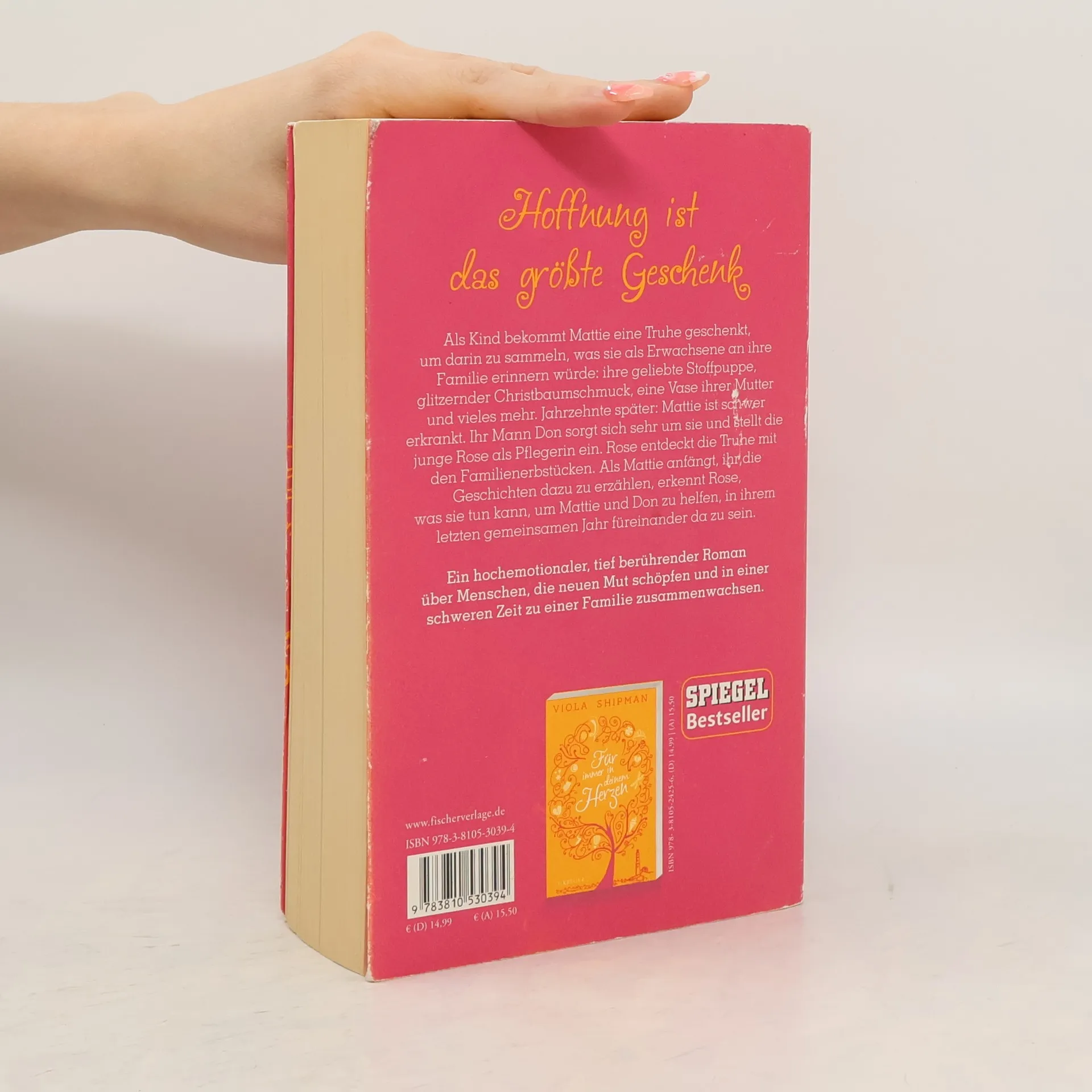 Hoffnung ist das größte Geschenk. Der neue Roman der Erfolgsautorin Viola Shipman. ›So groß wie deine Träume‹ ist eine hochemotionale, tief berührende Geschichte über drei Menschen, die neuen Mut schöpfen und ihrem Leben Sinn geben, indem sie füreinander da sind. Im Alter von zehn Jahren bekommt Mattie eine Truhe geschenkt, um darin alles zu sammeln, was sie als Erwachsene an ihre Familie erinnern würde: ihre geliebte Stoffpuppe, glitzernder Christbaumschmuck, eine Vase ihrer Mutter, und vieles mehr.Jahrzehnte später: Mattie ist inzwischen schwer erkrankt, ihr Mann Don sorgt sich sehr um sie und stellt Rose, eine junge, alleinerziehende Mutter, als Pflegerin ein. Rose stößt auf die verstaubte, vergessene Truhe und bringt sie Mattie. Nach und nach erzählt Mattie ihr die Geschichten und Geheimnisse, die sich um die Familienerbstücke ranken. Rose erkennt, was sie tun kann, um Mattie und Don zu helfen, in ihrem letzten gemeinsamen Jahr füreinander da zu sein.