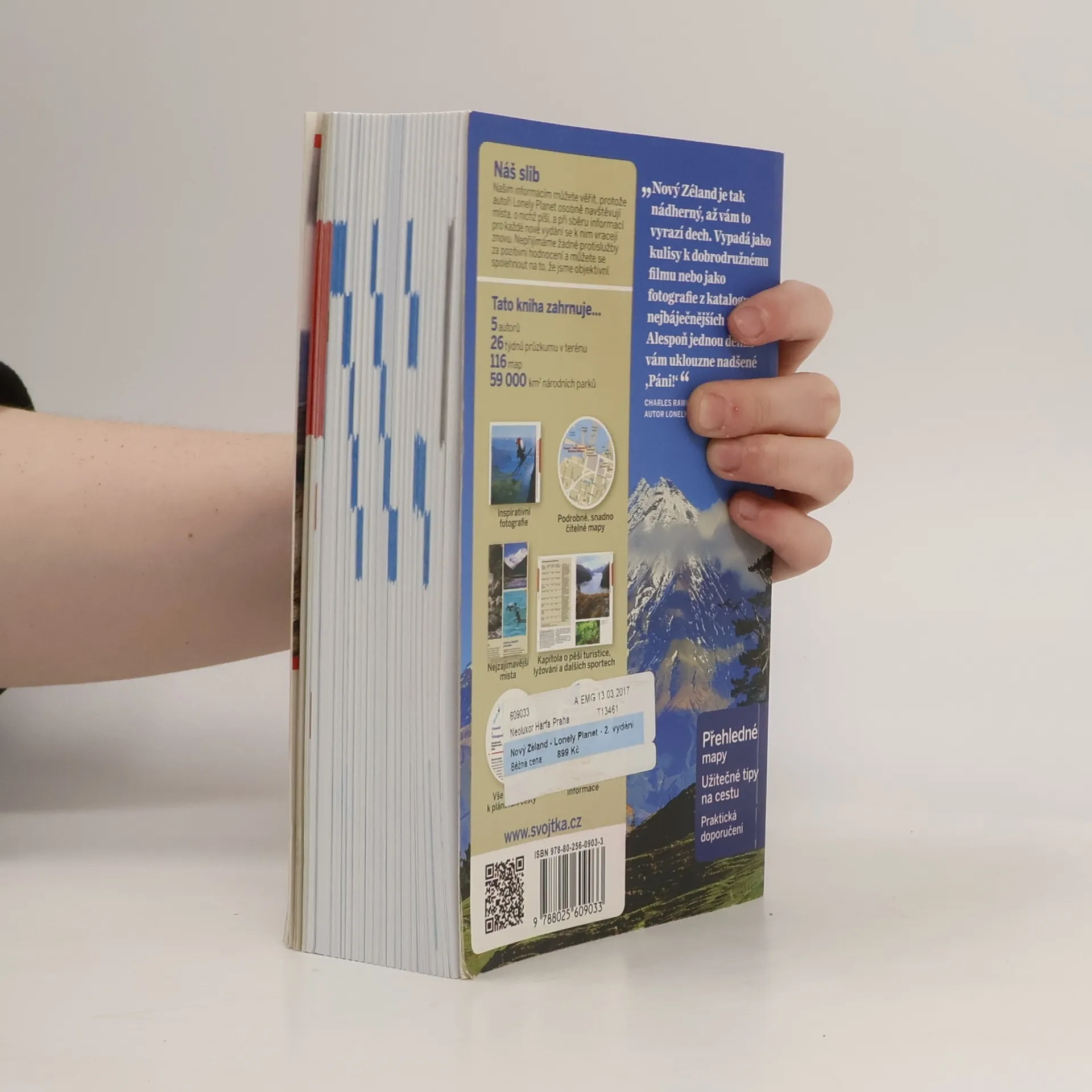 Nový Zéland je ohromující svou krásou, připomínající kulisy dobrodružného filmu nebo fotografie z nejlepších zájezdů. Každodenně vás okouzlí a vyvolá nadšené "Páni!". Kniha zahrnuje 5 autorů, 26 týdnů průzkumu, 116 map a 59 000 kilometrů čtverečních národních parků a rezervací. Nabízí inspirativní fotografie, přehledné mapy, kapitolu o trekkingu, lyžování a dalších aktivitách, stejně jako praktické informace pro plánování cesty. Autoři zahrnují Charlese Rawlings-Waye, který se podílel na kapitolách o plánování cesty a různých regionech, Brett Atkinsona, který se zaměřil na Christchurch a okolí, a Sarah Bennett s Lee Slaterem, kteří pokryli východní pobřeží a Wellington. Peter Dragicevich se věnoval Aucklandu a jeho okolí. Dalšími autory jsou Professor James Belich, Tony Horwitz, John Huria a další. Kniha je přeložena z anglického vydání Lonely Planet „New Zealand“ 16th Edition z roku 2012. Překlad provedli K.H. Doutná, Petr Hnilo a Tereza Horvátová. Vydalo nakladatelství Svojtka & Co. s.r.o. v Praze v září 2013 jako první české vydání.