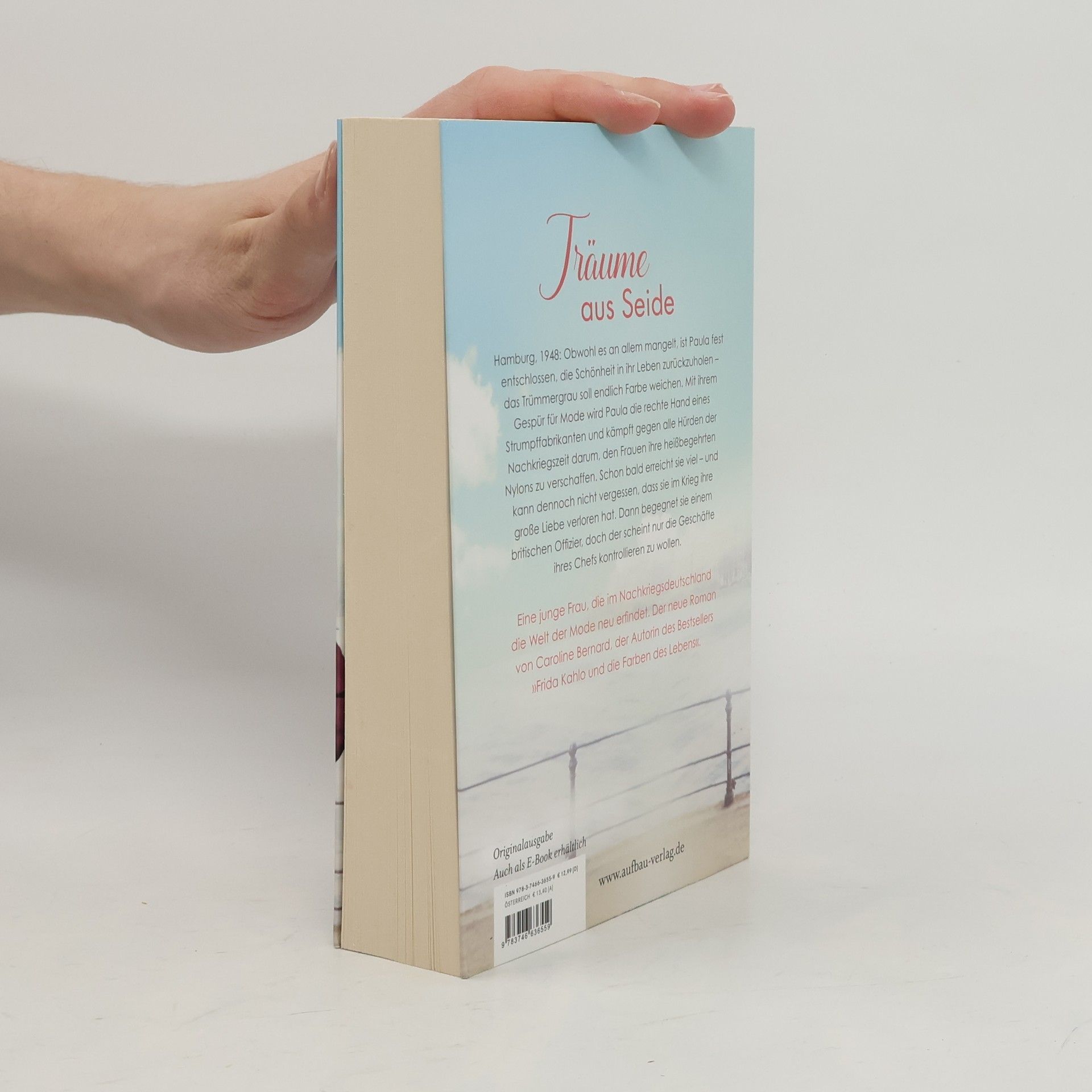 Träume aus Seide. Hamburg, 1948: Obwohl es an allem mangelt, ist Paula fest entschlossen, die Schönheit in ihr Leben zurückzuholen – das Trümmergrau soll endlich Farbe weichen. Mit ihrem Gespür für Mode wird Paula die rechte Hand eines Strumpffabrikanten und kämpft gegen alle Hürden der Nachkriegszeit darum, den Frauen ihre heißbegehrten Nylons zu verschaffen. Schon bald erreicht sie viel – und kann dennoch nicht vergessen, dass sie im Krieg ihre große Liebe verloren hat. Dann begegnet sie einem britischen Offizier, doch der scheint nur die Geschäfte ihres Chefs kontrollieren zu wollen. Eine junge Frau, die im Nachkriegsdeutschland die Welt der Mode neu erfindet. Der neue Roman von der Autorin des Nummer-1-Bestsellers „Frida Kahlo und die Farben des Lebens“