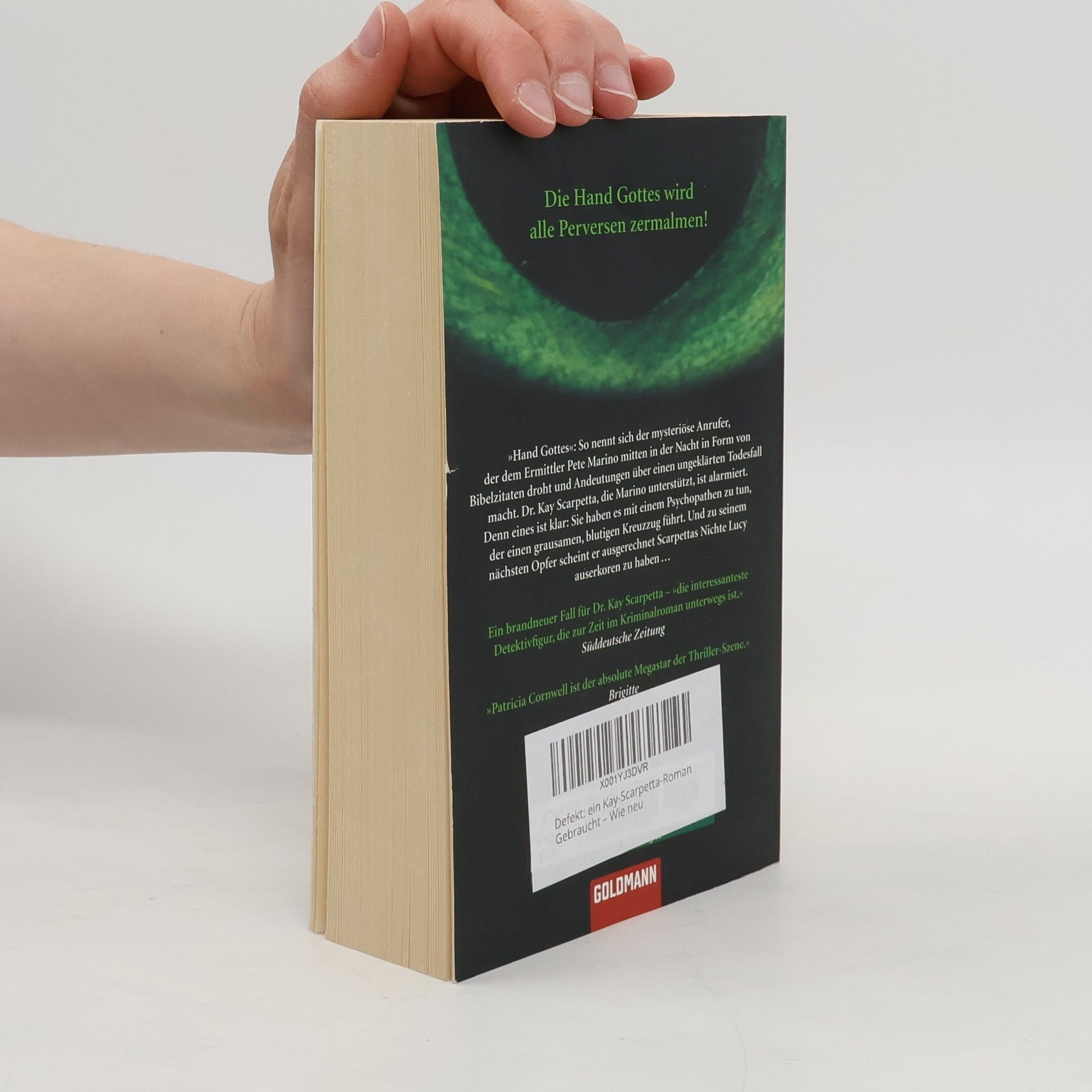 „Hand Gottes“: So nennt sich der mysteriöse Anrufer, der dem Ermittler Pete Marino mitten in der Nacht in Form von Bibelzitaten droht und Andeutungen über einen ungeklärten Todesfall macht. Dr. Kay Scarpetta, die Marino unterstützt, ist alarmiert. Denn eines ist klar: Sie haben es mit einem Psychopathen zu tun, der einen grausamen, blutigen Kreuzzug führt …