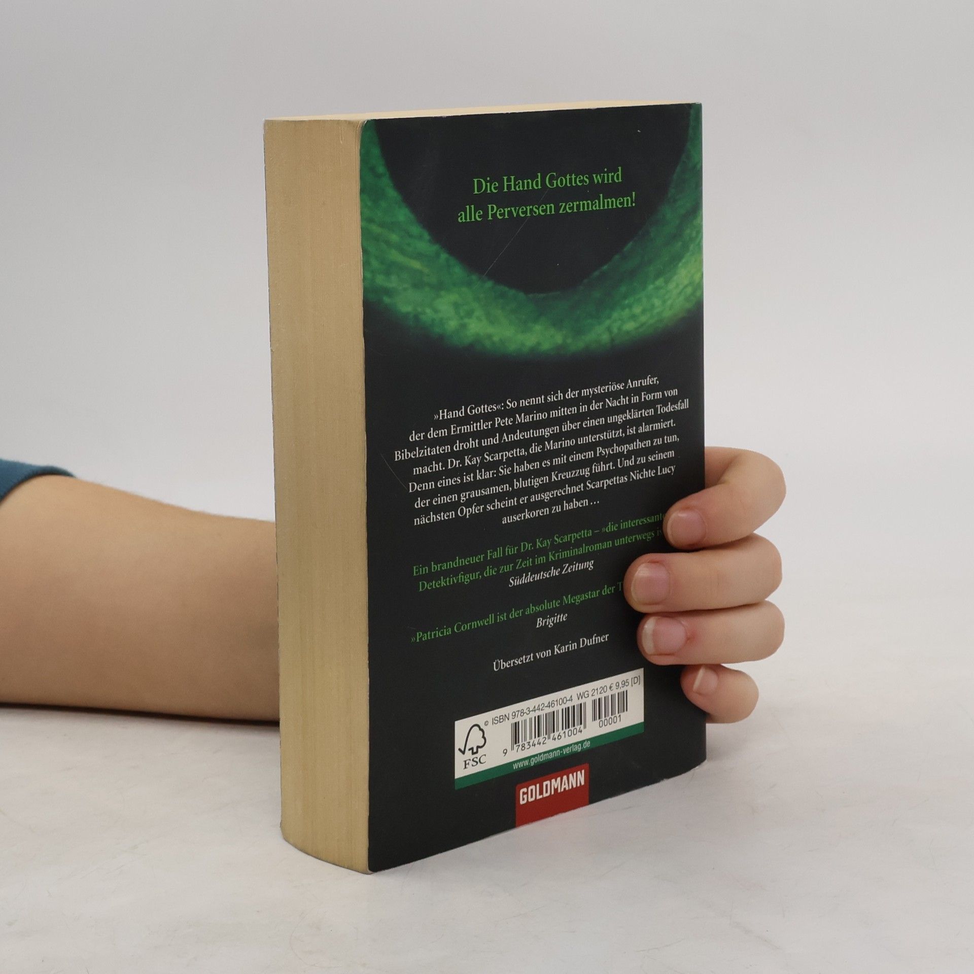 „Hand Gottes“: So nennt sich der mysteriöse Anrufer, der dem Ermittler Pete Marino mitten in der Nacht in Form von Bibelzitaten droht und Andeutungen über einen ungeklärten Todesfall macht. Dr. Kay Scarpetta, die Marino unterstützt, ist alarmiert. Denn eines ist klar: Sie haben es mit einem Psychopathen zu tun, der einen grausamen, blutigen Kreuzzug führt …