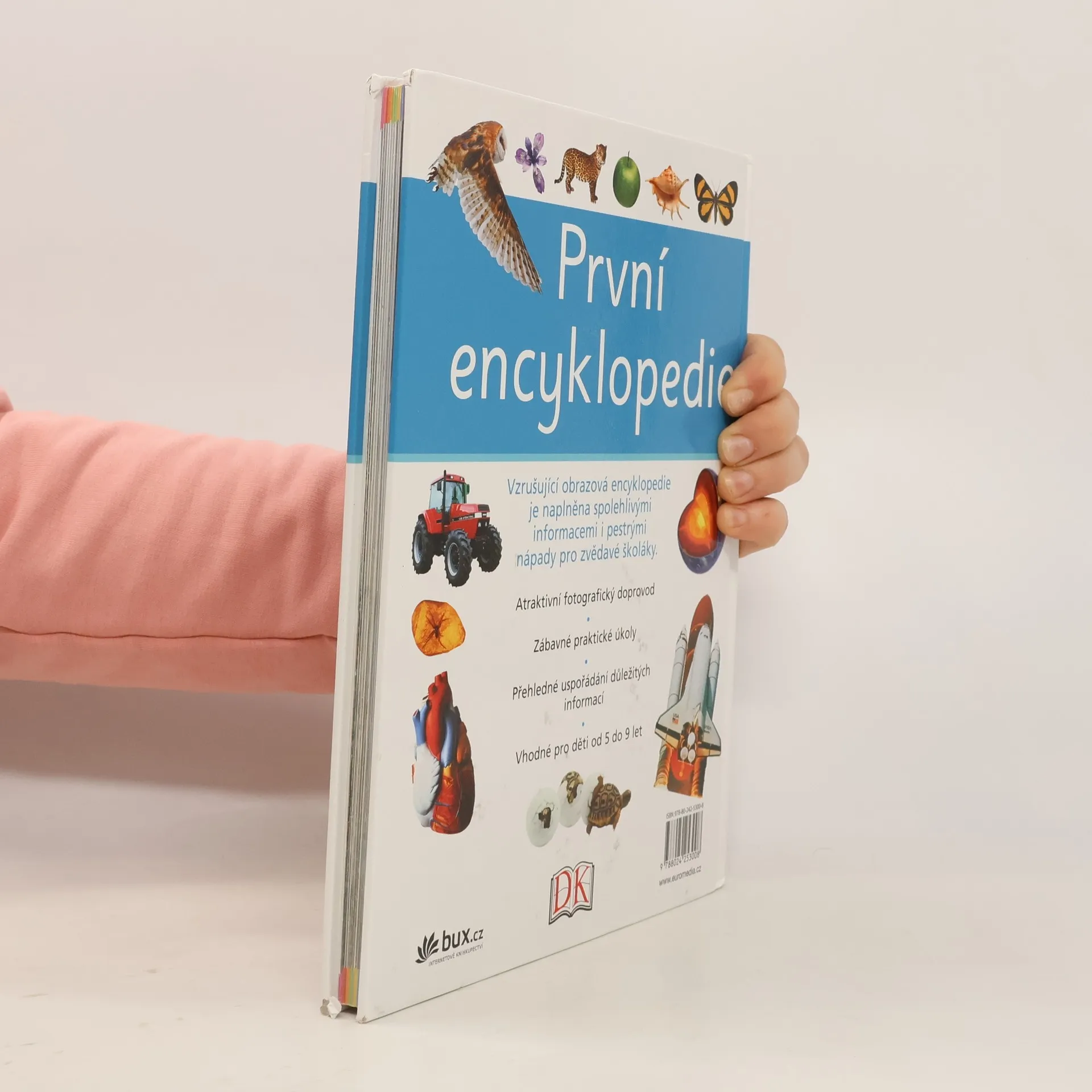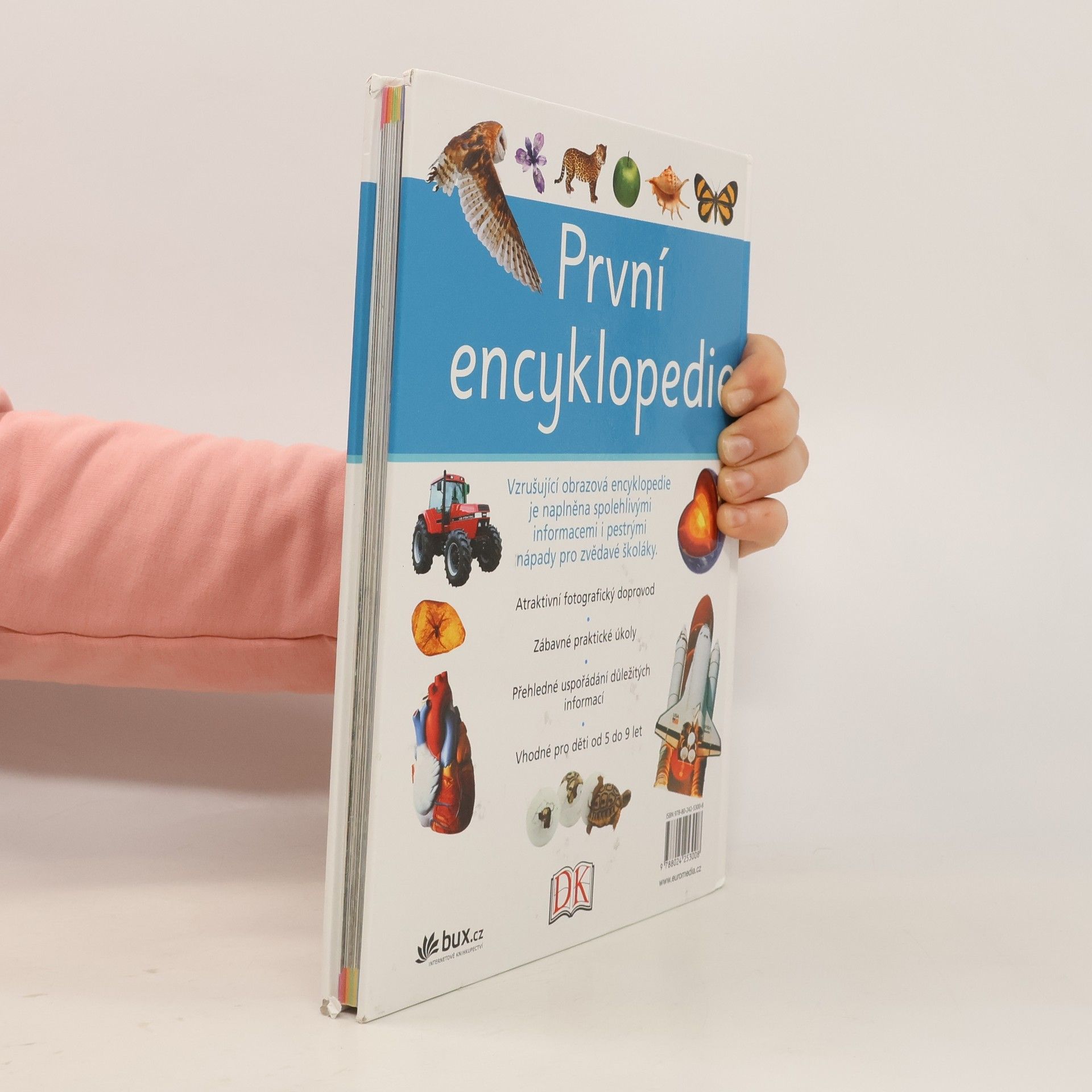 První encyklopedie seznamuje malé čtenáře s mnoha zajímavými fakty ze všech oblastí. Předkládá informace moderním způsobem, díky němuž dítě snadno najde, co potřebuje. Každá dvojstránka je zábavná, pestrá a přehledná. Výborné fotografie rozvíjejí znalosti ze všech oborů od zeměpisu a přírodopisu k dávné historii, světovým náboženstvím či moderním technologiím. Kapitoly doplňují zábavné praktické úkoly, které prohlubují zájem dětí o dané téma. Kniha je vhodná pro děti od 5 do 9 let.