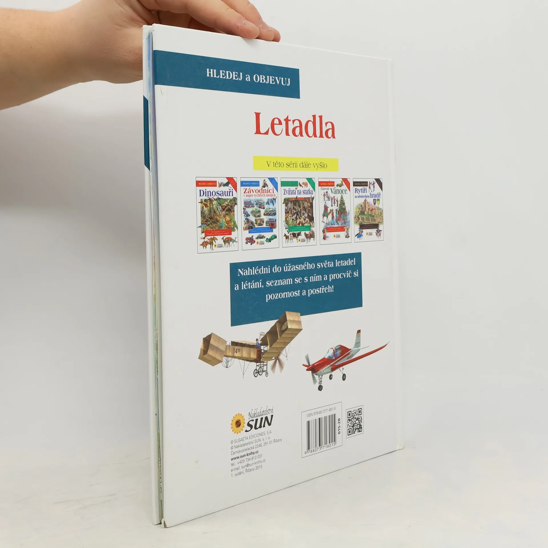 V této knize se dozvíš spoustu zajímavostí o historii i současnosti letadlech,o letištích, o technice, která se používá, apod. Ale nejen to. Ke každé kapitole patří obrázek, na nějž se zatoulalo několik předmětů, které tam nepatří. Najdeš všechny tyto věci? Procvič si pozornost a postřeh.