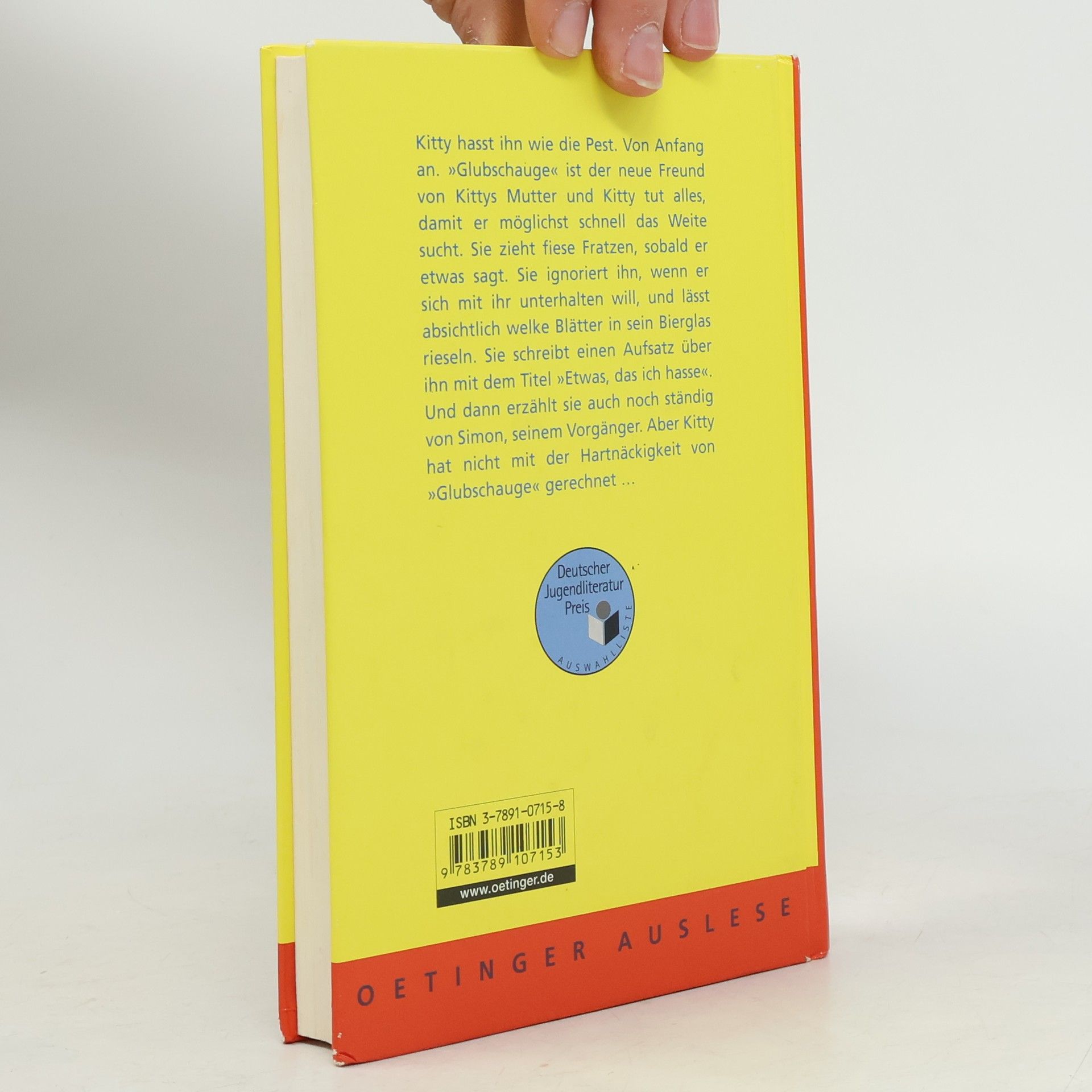 Was Kitty so alles einfällt, um den Freund ihrer Mutter loszuwerden. Kitty hasst ihn wie die Pest: "Glubschauge", den neuen Freund ihrer Mutter. Sie tut alles, damit er möglichst schnell das Weite sucht, zieht fiese Fratzen, sobald er etwas sagt, ignoriert ihn, wenn er sich mit ihr unterhalten will und lässt absichtlich welke Blätter in sein Bierglas rieseln. Doch sie hat nicht mit seiner Hartnäckigkeit gerechnet.