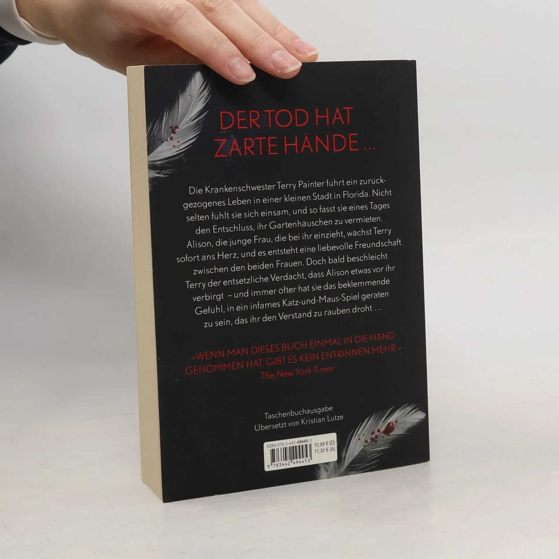 Der Tod hat zarte Hände … Die Krankenschwester Terry Painter führt ein zurückgezogenes Leben in einer kleinen Stadt in Florida. Nicht selten fühlt sie sich einsam, und so fasst sie eines Tages den Entschluss, ihr Gartenhäuschen zu vermieten. Alison, die junge Frau, die bei ihr einzieht, wächst Terry sofort ans Herz, und es entsteht eine liebevolle Freundschaft zwischen den beiden Frauen. Doch plötzlich beschleicht Terry der entsetzliche Verdacht, dass Alison etwas vor ihr verbirgt – und sie hat immer öfter das beklemmende Gefühl, in ein infames Katz-und-Maus-Spiel geraten zu sein, das ihr den Verstand zu rauben droht …