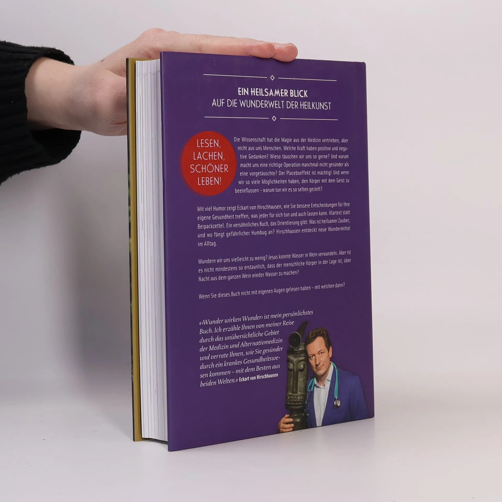 Ein heilsamer Blick auf die Wunderwelt der Heilkunst Die Wissenschaft hat die Magie aus der Medizin vertrieben, aber nicht aus uns Menschen. Welche Kraft haben positive und negative Gedanken? Wieso täuschen wir uns so gerne? Und warum macht uns eine richtige Operation manchmal nicht gesünder als eine vorgetäuschte? Der Placeboeffekt ist mächtig! Und wenn wir so viele Möglichkeiten haben, den Körper mit dem Geist zu beeinflussen – warum tun wir es so selten gezielt? Mit viel Humor zeigt Eckart von Hirschhausen, wie Sie bessere Entscheidungen für Ihre eigene Gesundheit treffen, was jeder für sich tun und auch lassen kann. Klartext statt Beipackzettel. Ein versöhnliches Buch, das Orientierung gibt: Was ist heilsamer Zauber, und wo fängt gefährlicher Humbug an? Hirschhausen entdeckt neue Wundermittel im Alltag. Wundern wir uns vielleicht zu wenig? Jesus konnte Wasser in Wein verwandeln. Aber ist es nicht mindestens so erstaunlich, dass der menschliche Körper in der Lage ist, über Nacht aus dem ganzen Wein wieder Wasser zu machen? Wenn Sie dieses Buch nicht mit eigenen Augen gelesen haben – mit welchen dann? «'Wunder wirken Wunder› ist mein persönlichstes Buch. Ich erzähle Ihnen von meiner Reise durch das unübersichtliche Gebiet der Medizin und Alternativmedizin und verrate Ihnen, wie Sie gesünder durch ein krankes Gesundheitswesen kommen – mit dem Besten aus beiden Welten.» (Eckart von Hirschhausen)