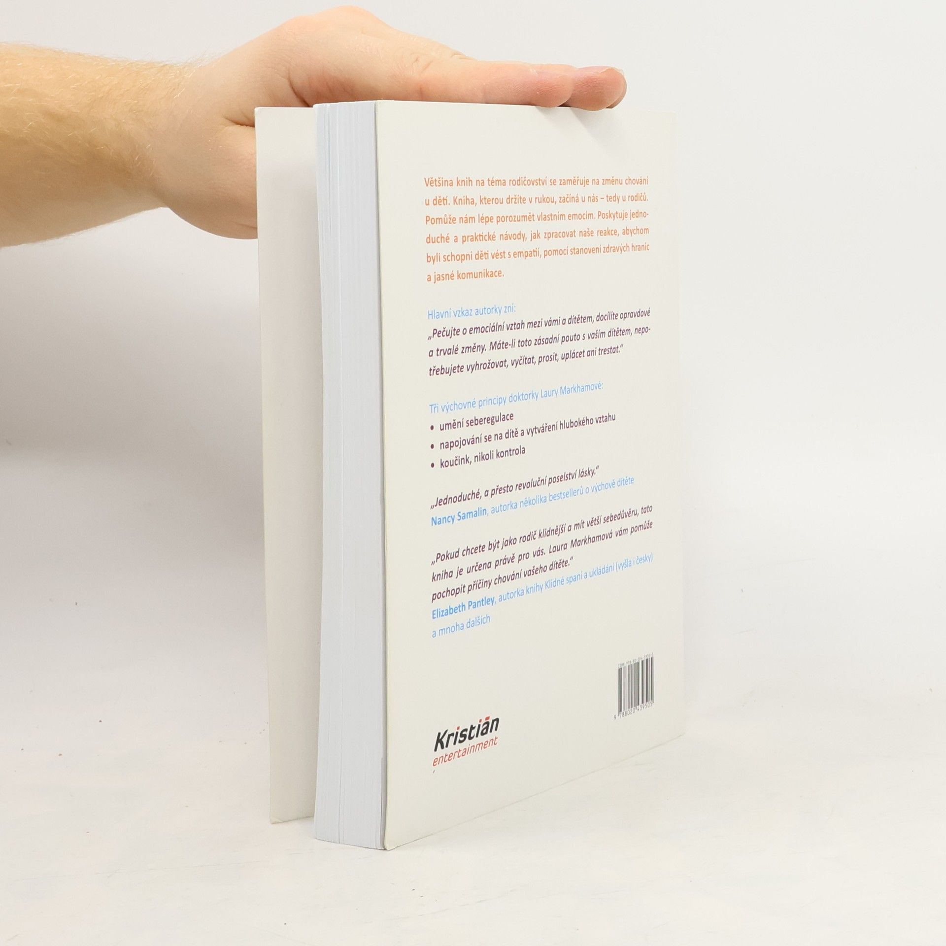 Většina knih na téma rodičovství se zaměřuje na změnu chování u dětí. Kniha, kterou držíte v rukou, začíná u nás – tedy u rodičů. Pomůže nám lépe porozumět vlastním emocím. Poskytuje jednoduché a praktické návody, jak zpracovat naše reakce, abychom byli schopni děti vést s empatií, pomocí stanovení zdravých hranic a jasné komunikace. Hlavní vzkaz autorky zní: „Pečujte o emociální vztah mezi vámi a dítětem, docílíte opravdové a trvalé změny. Máte-li toto zásadní pouto s vaším dítětem, nepotřebujete vyhrožovat, vyčítat, prosit, uplácet ani trestat.“ Tři principy doktorky Laury Markhamové: • umění seberegulace • napojování se na dítě a vytváření hlubokého vztahu • koučink, nikoli kontrola
