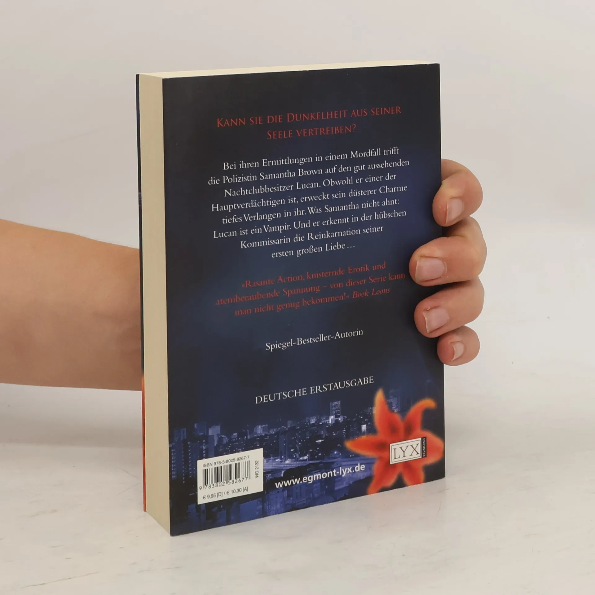 Die Mordkommissarin Samantha Brown ist eine toughe und erfolgreiche Polizistin. Sie verfolgt einen psychisch gestörten Mörder, und der einzige Hinweis auf seine Identität ist ein mittelalterliches Kreuz, in das der Name „Lucan“ eingraviert ist. Genau so heißt der Besitzer eines neu eröffneten Nachtclubs, der sich in der Nähe des Tatorts befindet. Doch als Samantha gegen Lucan zu ermitteln beginnt, muss sie feststellen, dass sein düsterer Charme ein tiefes Verlangen in ihr weckt. Was Samantha nicht ahnt: Lucan ist ein Vampir. Und er erkennt in der hübschen Kommissarin die Reinkarnation seiner ersten großen Liebe.