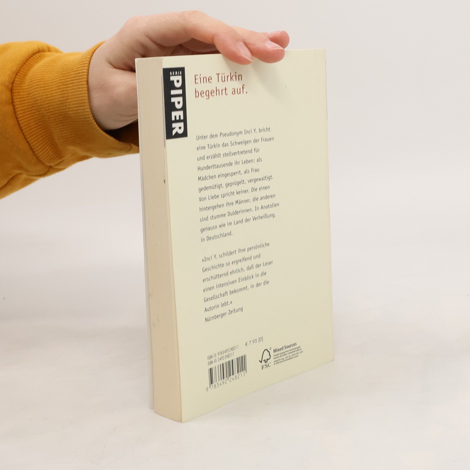 Unter dem Pseudonym Inci Y. bricht eine Türkin das Schweigen der Frauen und erzählt stellvertretend für Hunderttausende ihr Leben: als Mädchen eingesperrt, als Frau gedemütigt, geprügelt, vergewaltigt. Von Liebe spricht keiner. Die einen hintergehen ihre Männer, die anderen sind stumme Dulderinnen. In Anatolien genauso wie im Land der Verheißung, in Deutschland.
