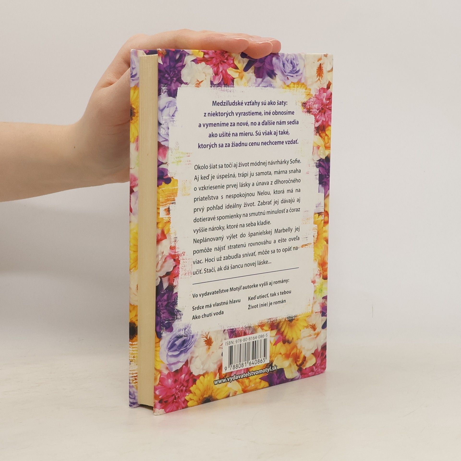 Medziľudské vzťahy sú ako šaty: z niektorých vyrastieme, iné obnosíme a vymeníme za nové, no a ďalšie nám sedia ako ušité na mieru. Sú však aj také, ktorých sa za žiadnu cenu nechceme vzdať. Okolo šiat sa točí aj život módnej návrhárky Sofie. Aj keď je úspešná, trápi ju samota, márna snaha o vzkriesenie prvej lásky a únava z dlhoročného priateľstva s nespokojnou Nelou, ktorá má na prvý pohľad ideálny život. Zabrať jej dávajú aj dotieravé spomienky na smutnú minulosť a čoraz vyššie nároky, ktoré na seba kladie. Neplánovaný výlet do španielskej Marbelly jej pomôže nájsť stratenú rovnováhu a ešte oveľa viac. Hoci už zabudla snívať, môže sa to opäť naučiť. Stačí, ak dá šancu novej láske...