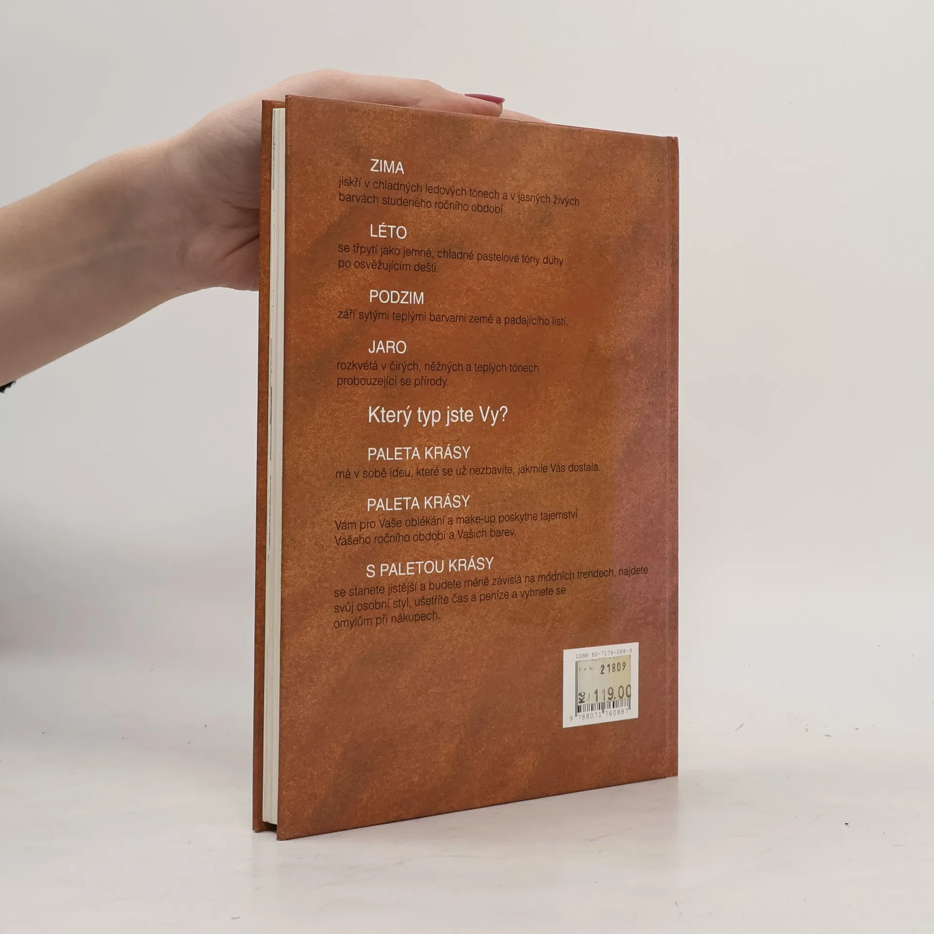 Jak se oblékat podle roční typologie. Jste jarní, letní, podzimní nebo zimní typ? Jaké barvy se k vám tedy hodí? Jaké odstíny make -upu sednou k vaší pleti? Na to vše vám odpoví tato kniha.